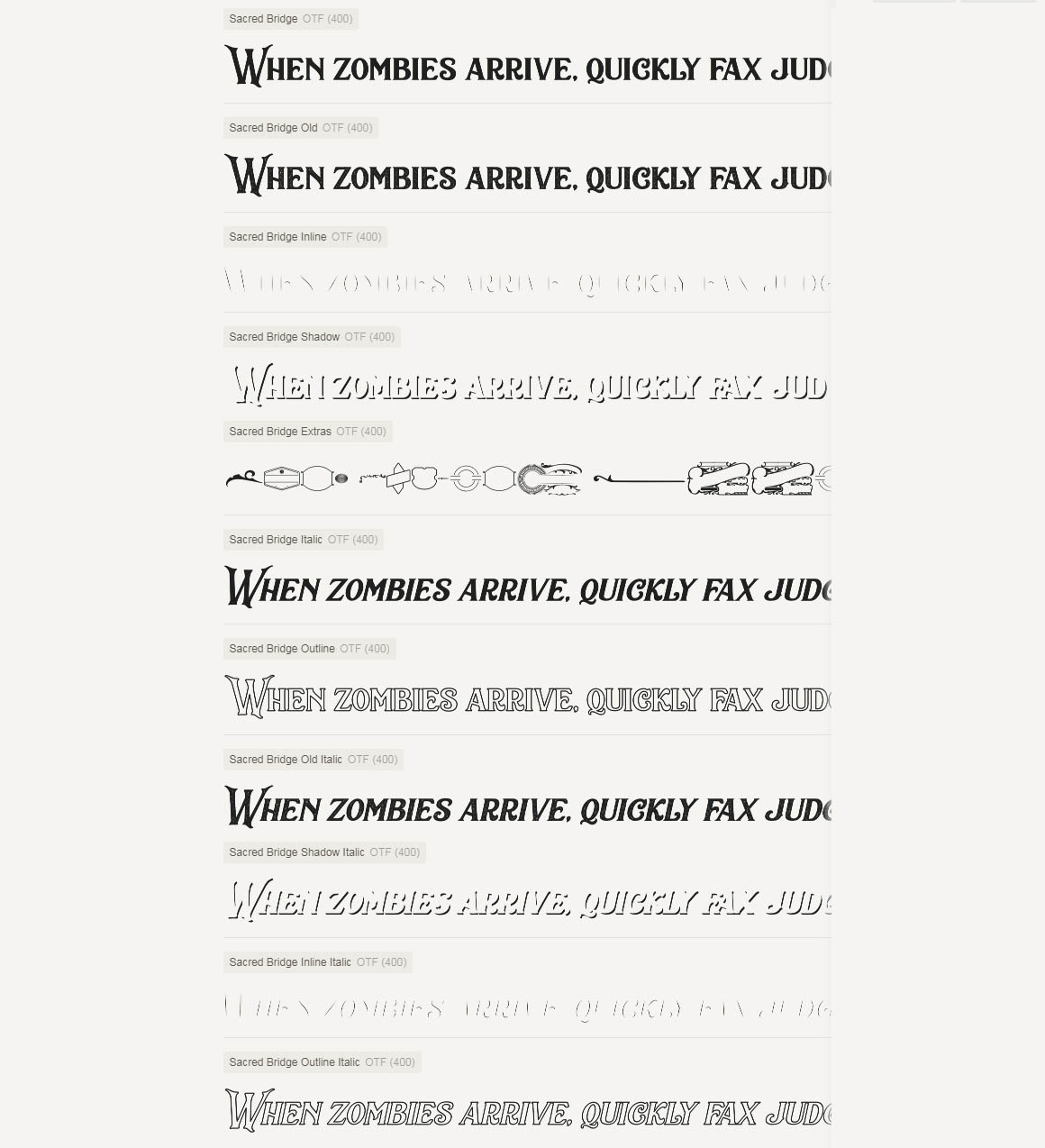 Sacred Bridge is an old fashioned typeface ,come up with clean and letterpress style, regular and italic with extra ornaments and symbols. Sacred Bridge is great for any kind of display purpose from branding, emblem, advertising , t-shirt , etc you name it.