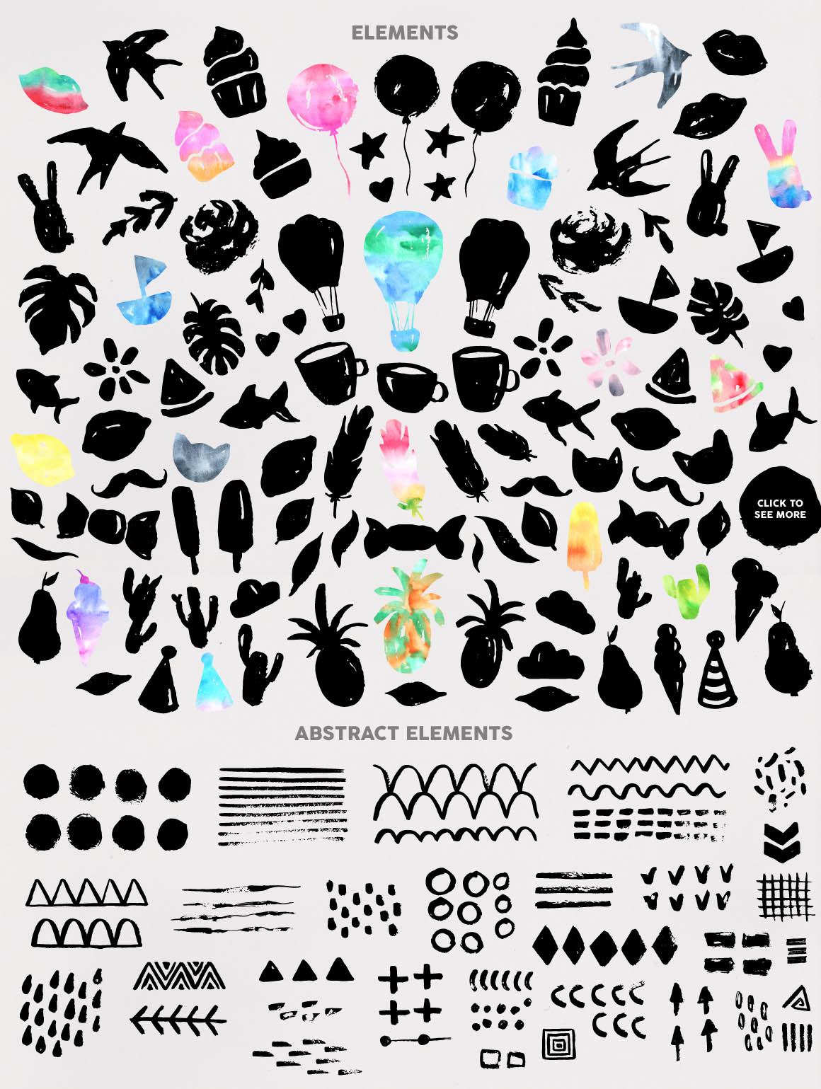 - ELEMENTS [ All files are stored in 3 formats: AI, EPS and PNG. Each object is stored in an individual PNG file with transparent background ];