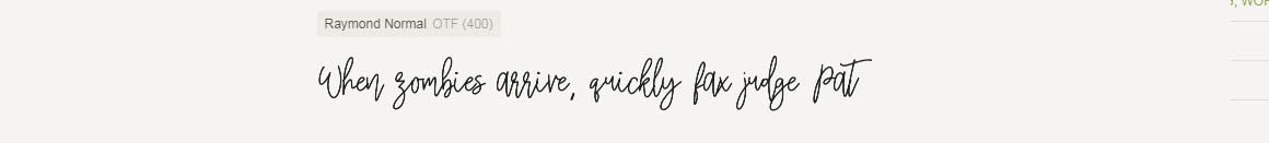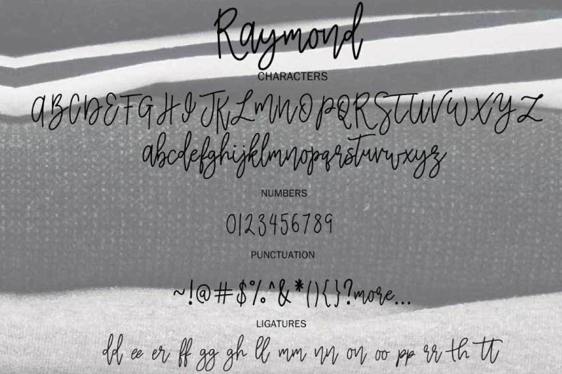 RAYMOND is branding font. Every single letter has been creative carefully This font is a little romantic script designed for making your set of invitations, quotes, blog posts, and more completely beautiful.