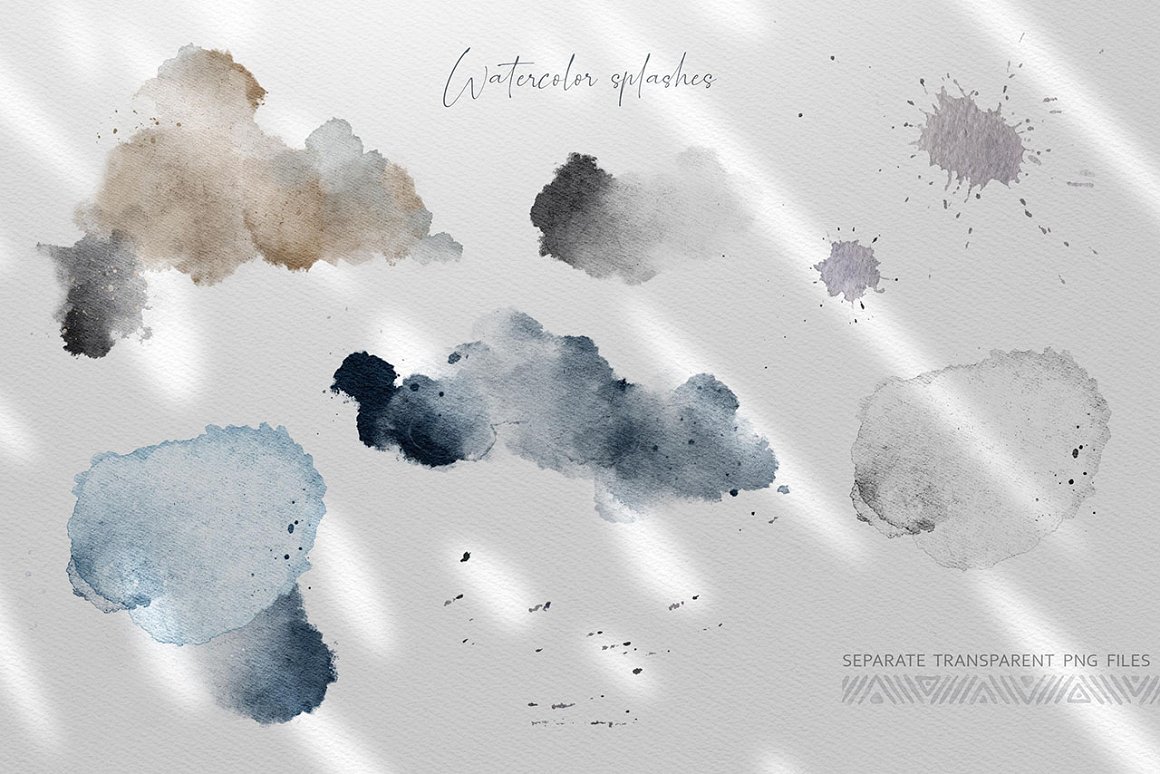 - Watercolor shapes and splashes (8 PNG)