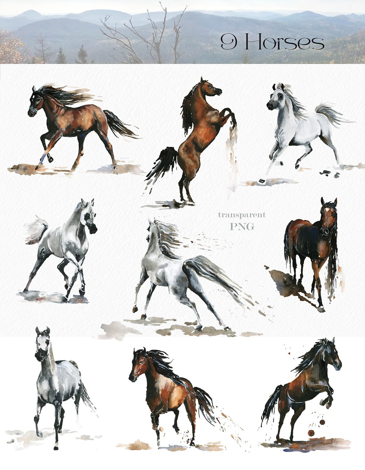 - Horses (9 PNG, approx. 3500 x 5000 px)
