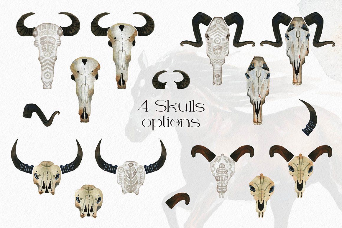 You will find beautiful wild horses, ravens, skulls and seamless patterns in it. There are 65 items in this set. All the files are 300 dpi. The .PNG files have been entirely removed from its backgrounds.