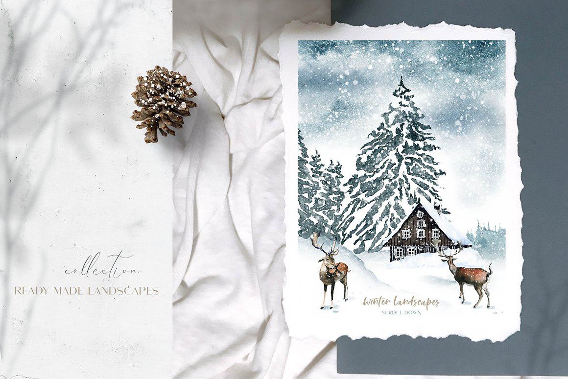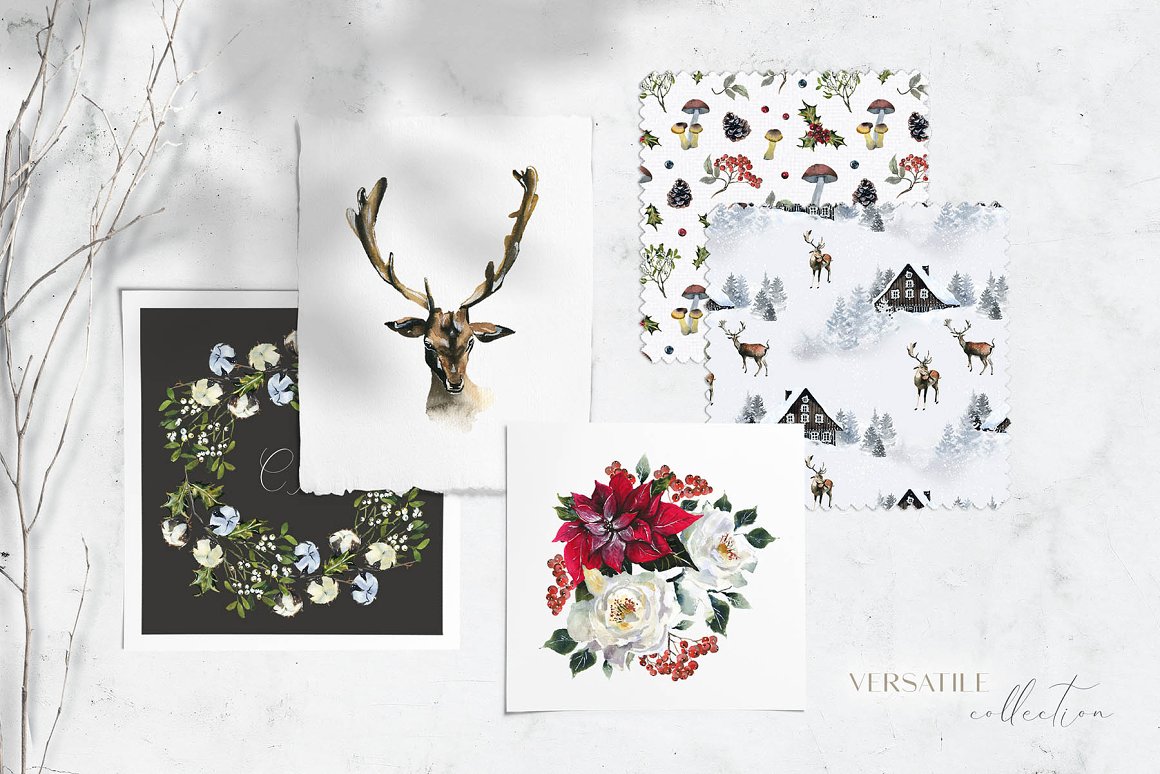 Hi there! Meet my new Christmas watercolor collection Northern Fairy Tale!