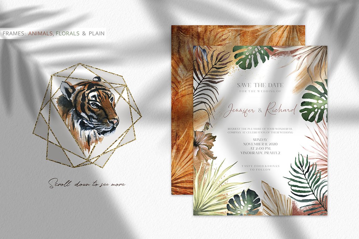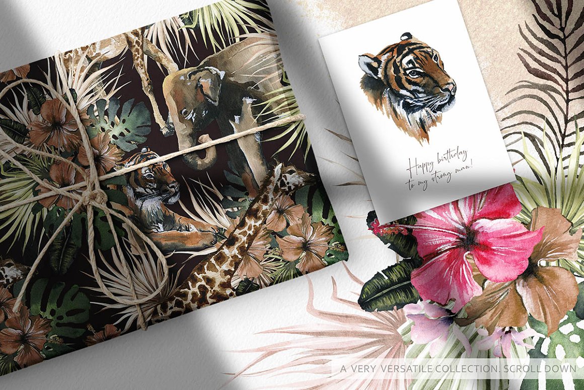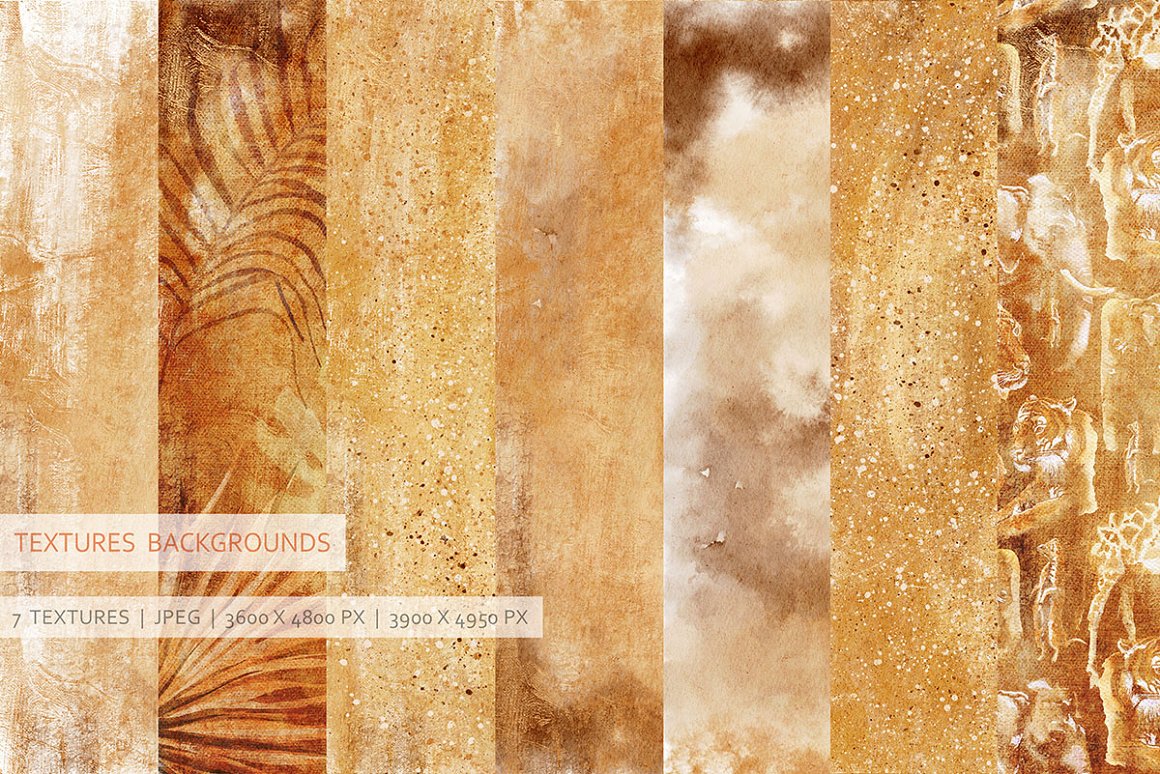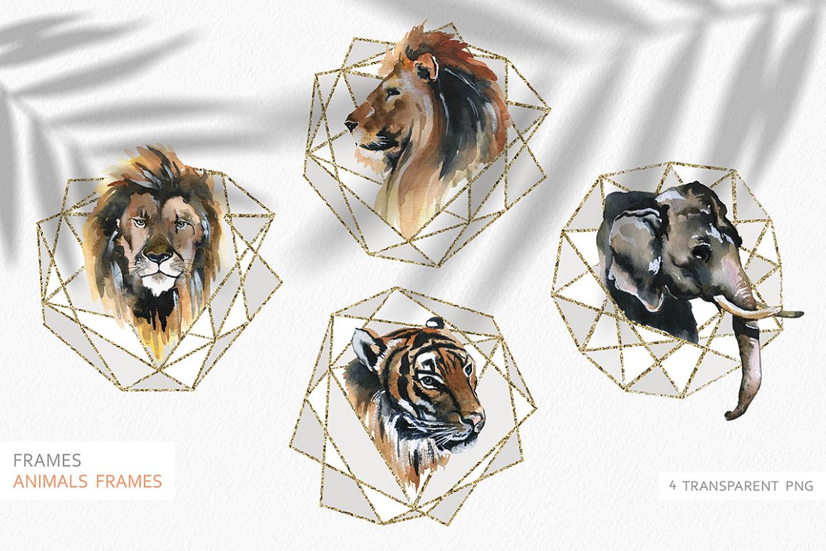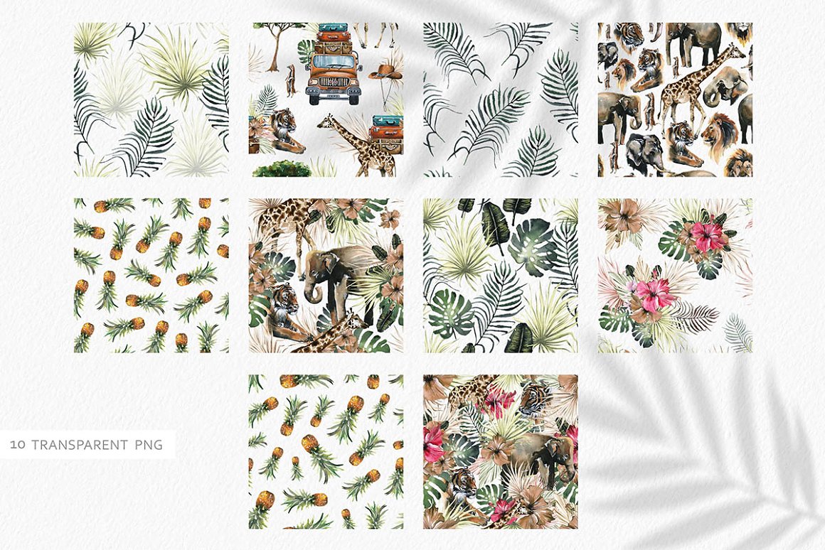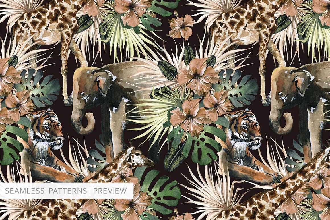 There are beautiful animals, exotic plants and textured backgrounds which helps to create your own exclusive design. I also included some seamless patterns which are great fot fabric prind or packaging design. All the files are 300 dpi. The .PNG files have been entirely removed from its backgrounds. The Rectangle frames come in PNG, JPEG and layered PSD files. Seamless patterns come in Jpegs and transparent PNG format as well.