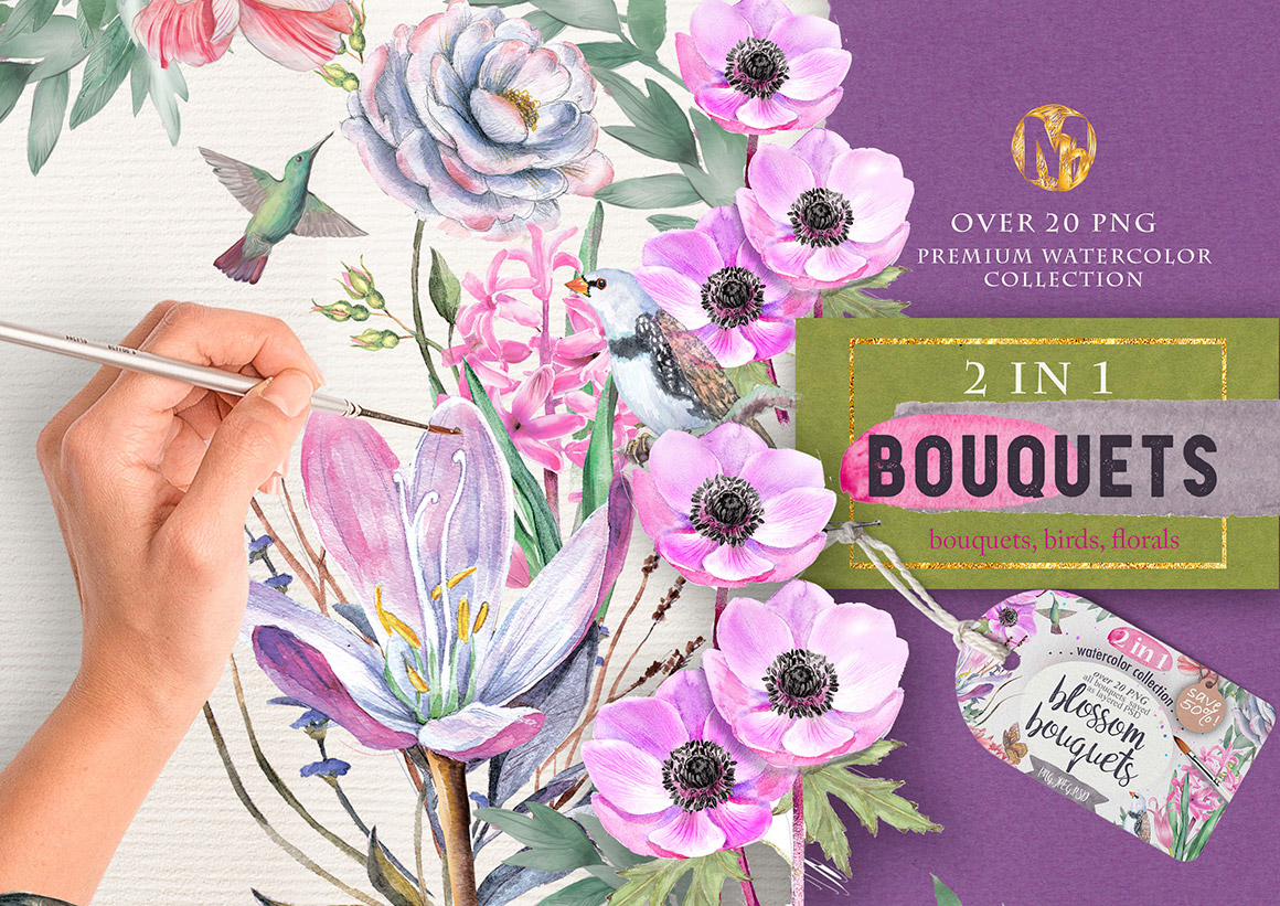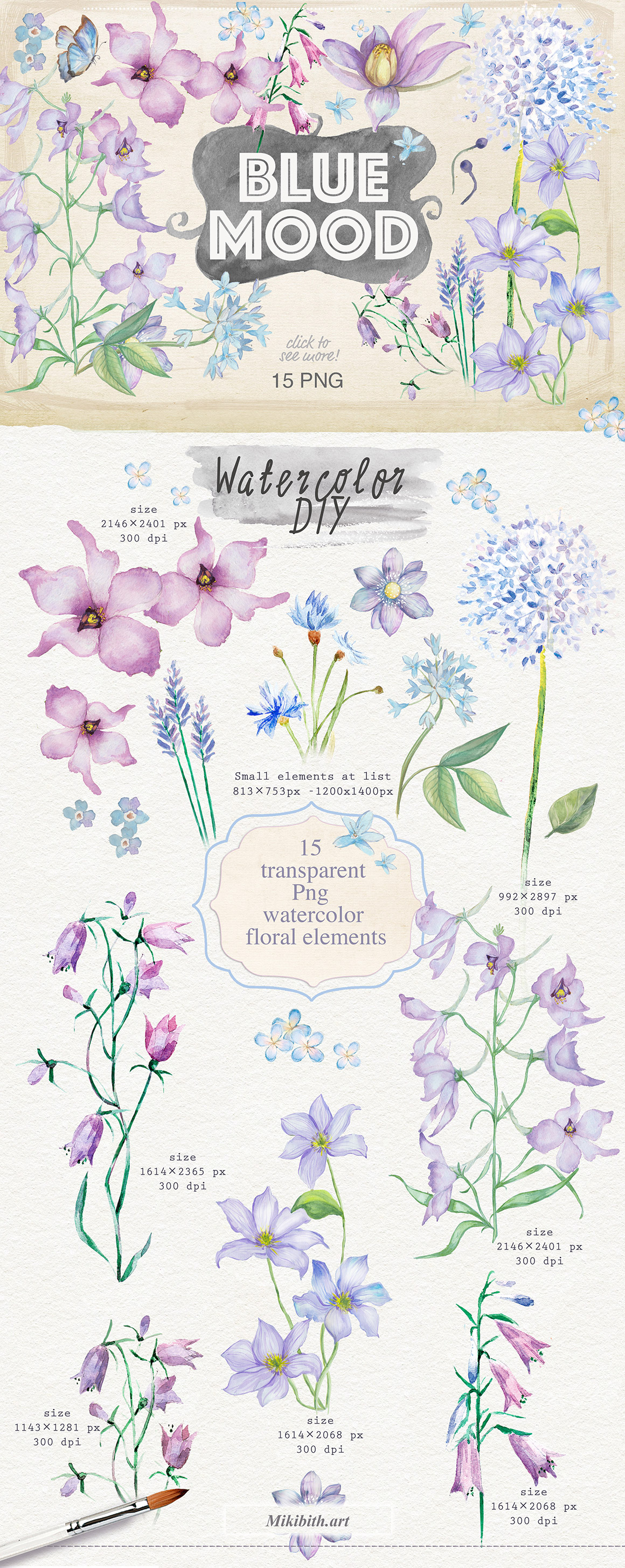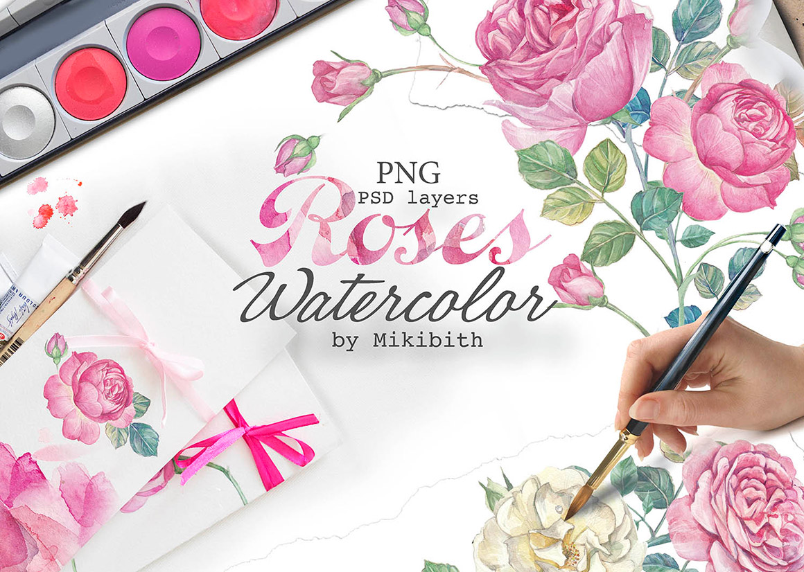 All these elegant & romantic style watercolor graphics from MikiBith Art are ready for print or online use! MAIN USAGE: flyers, posters, greeting cards, branding, packaging, phone cases, bags and totes, wall art, fabrics, t-shirts, website backgrounds. Actually any place you love! Enjoy 😉