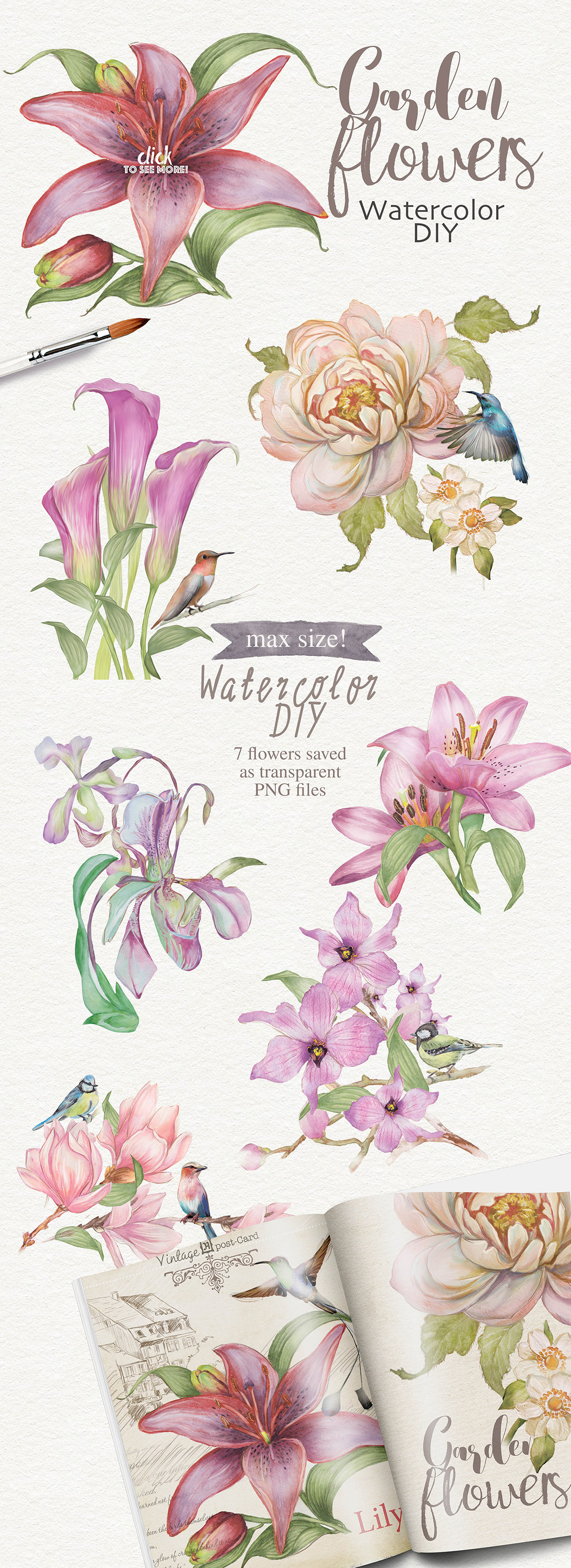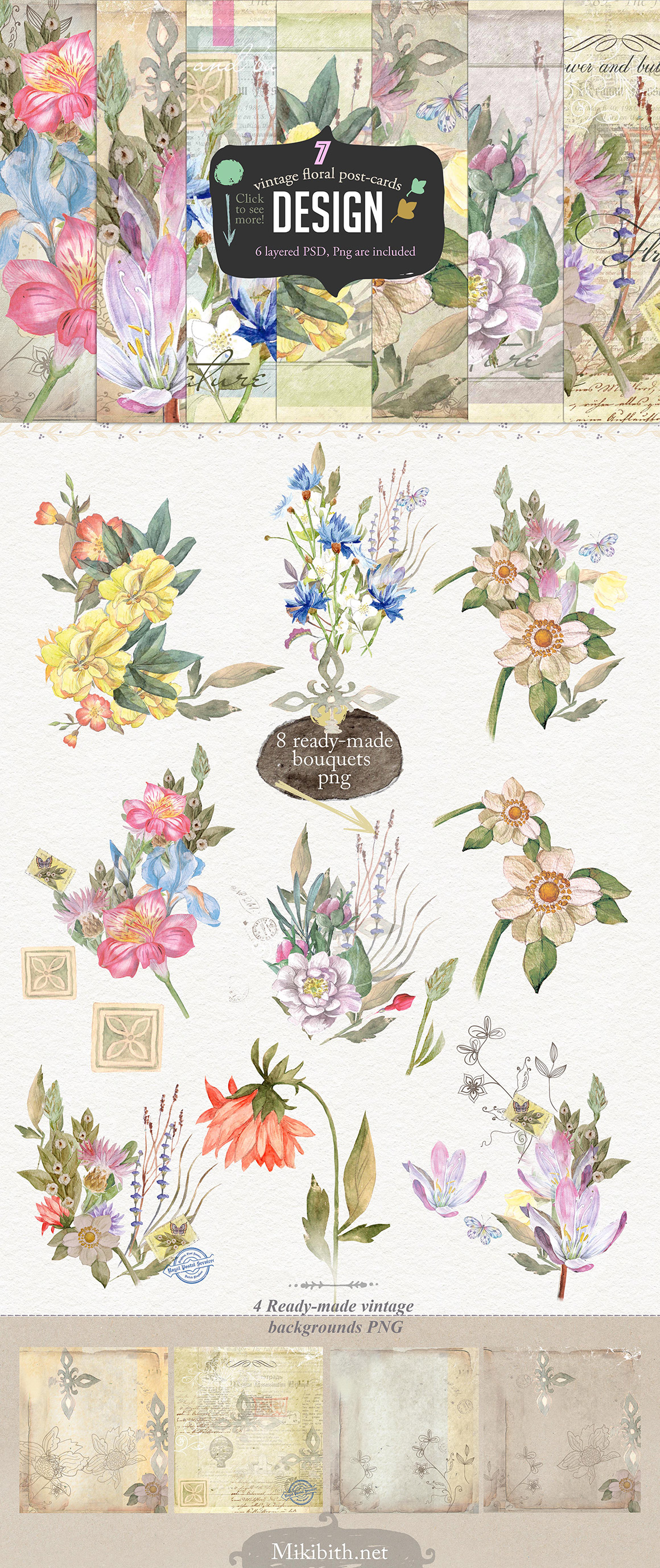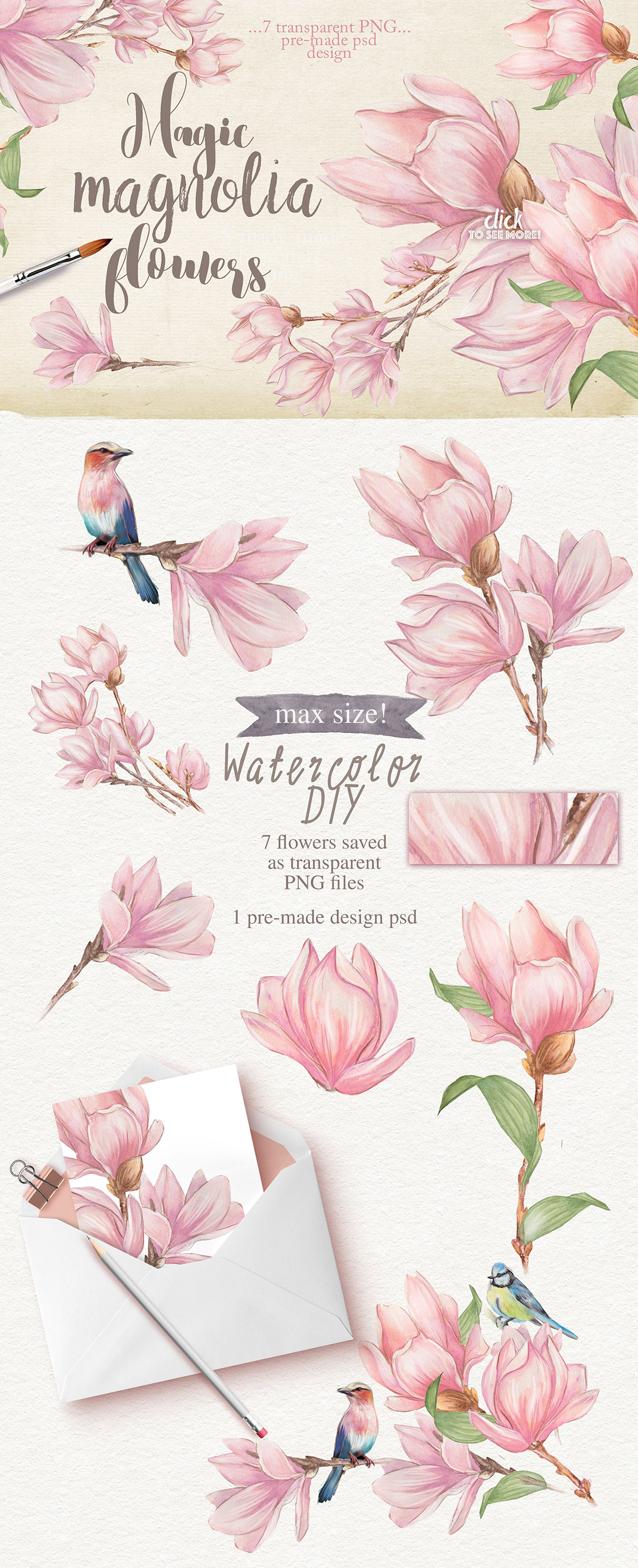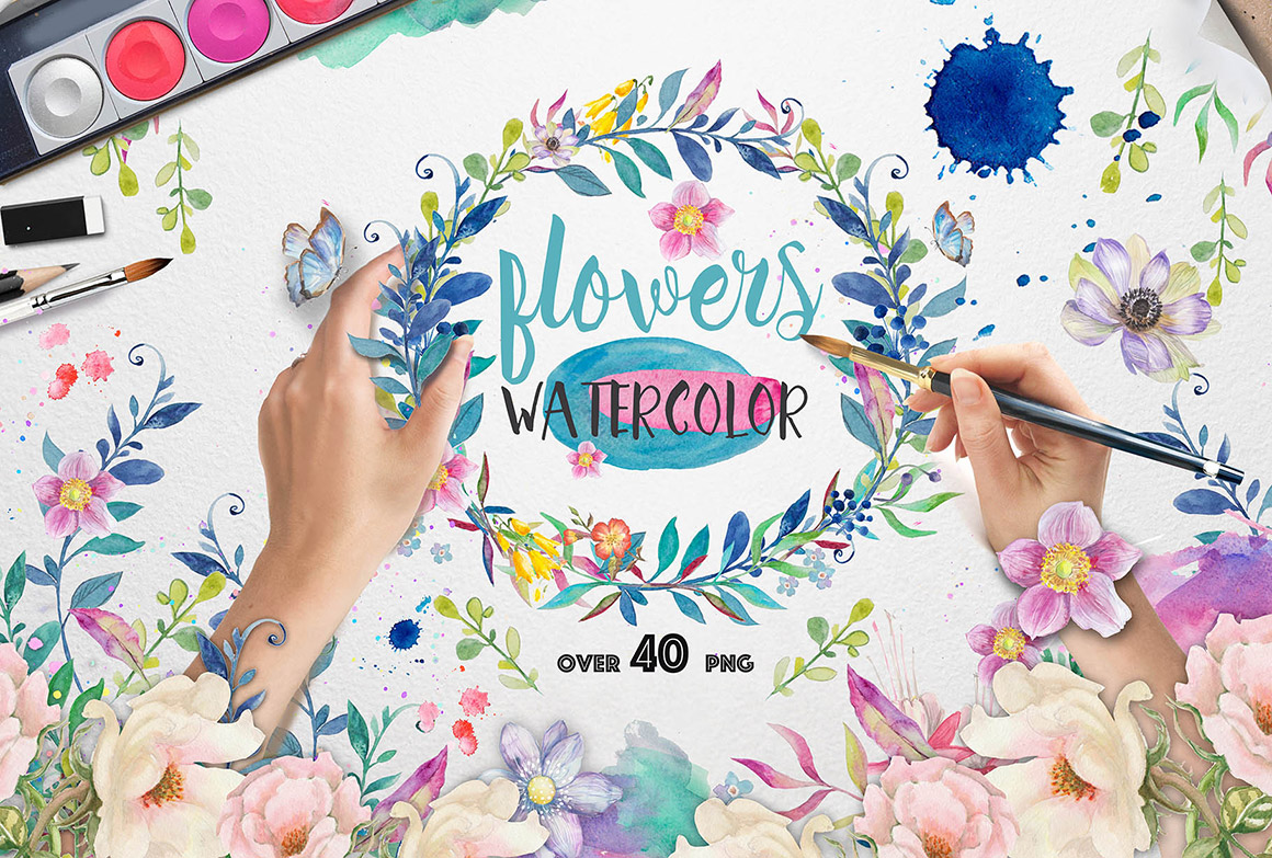 I’m so glad to introduce to you this art collection !! There are more than 85 PNG and 7 Psd files with watercolor floral elements on the transparent PNG and layered PSD !