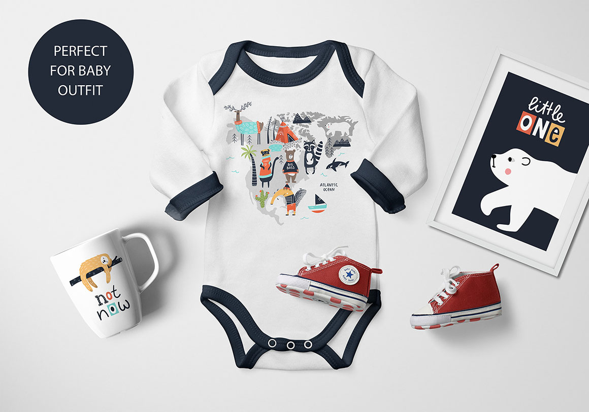 Create your unique Animal Maps, Nursery Posters, Baby Outfit and others.