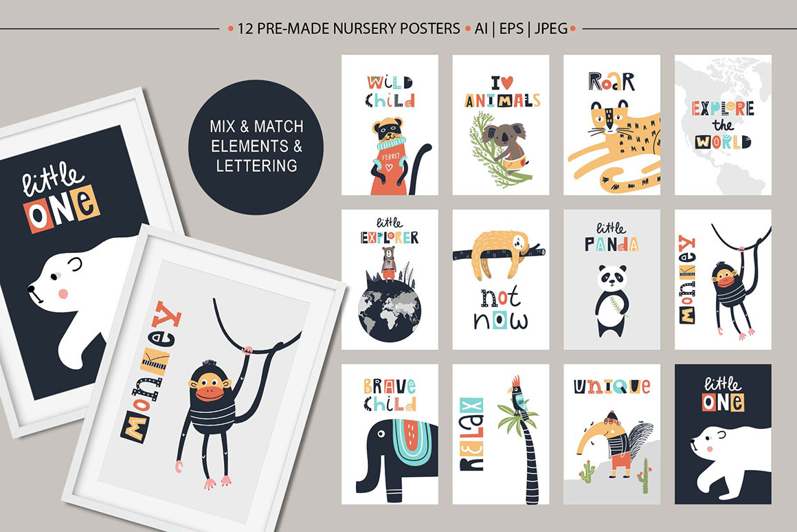 - 24 pre-made nursery posters (AI, EPS 10, JPG 300 dpi)