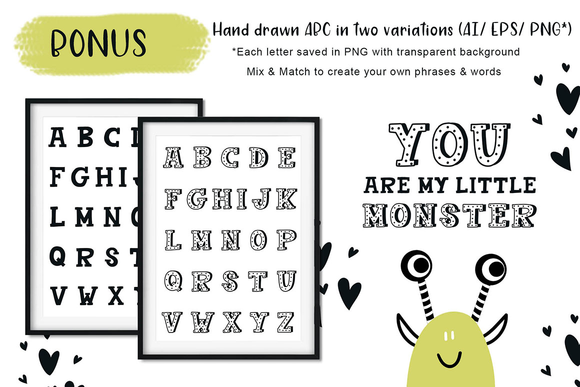 - +bonus ABC – each letter on PNG with transparent background in black & white versions (AI, EPS 10, transparent PNG)