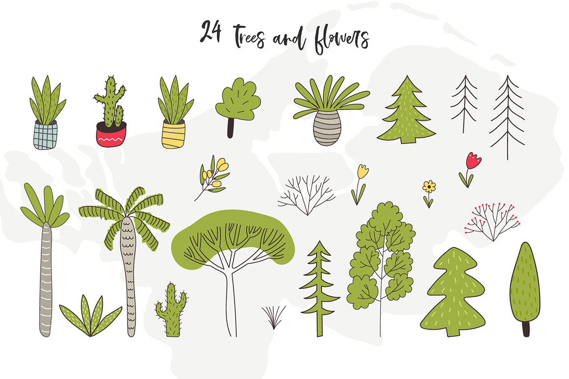 - 24 trees and flowers (AI, EPS 10, transparent PNG)