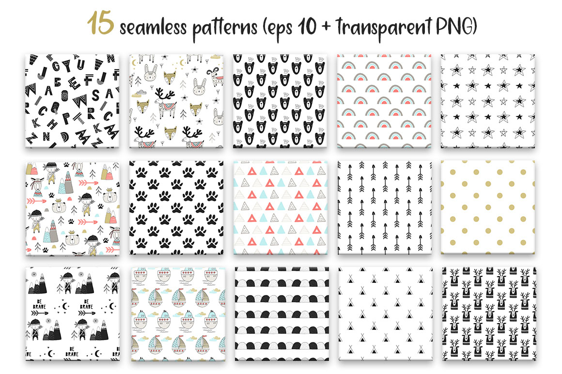 - 15 seamless patterns (EPS 10, transparent PNG)