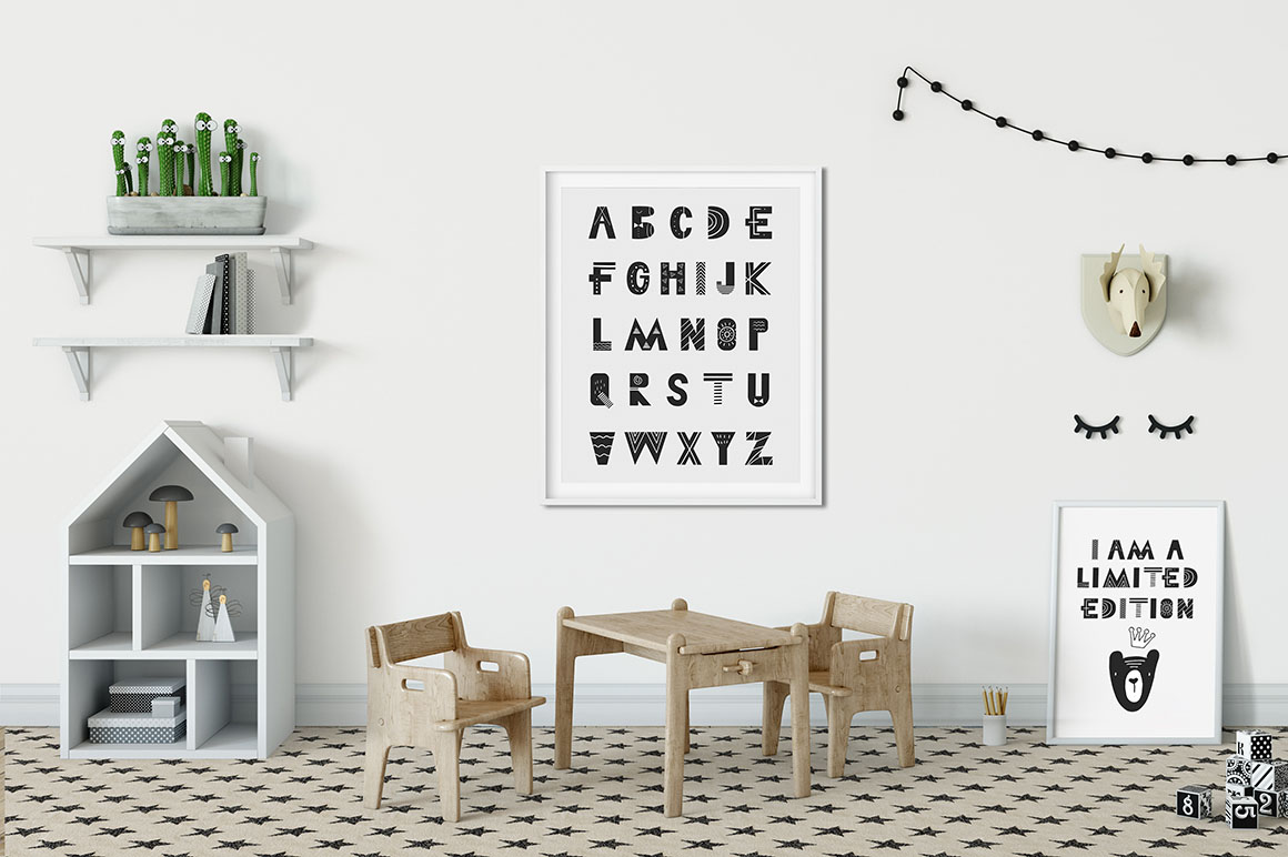 This nursery collection includes 95 black & white elements, 111 color elements, 38 lettering phrases & words (in black/white/color versions), 15 seamless patterns, 20 pre-made monochromes and color posters, ABC (each letter on PNG transparent background in black & white versions). All elements of the collection were drawn by hand and then carefully digitzed. It’s perfect for wall design, posters, room decor and children prints.