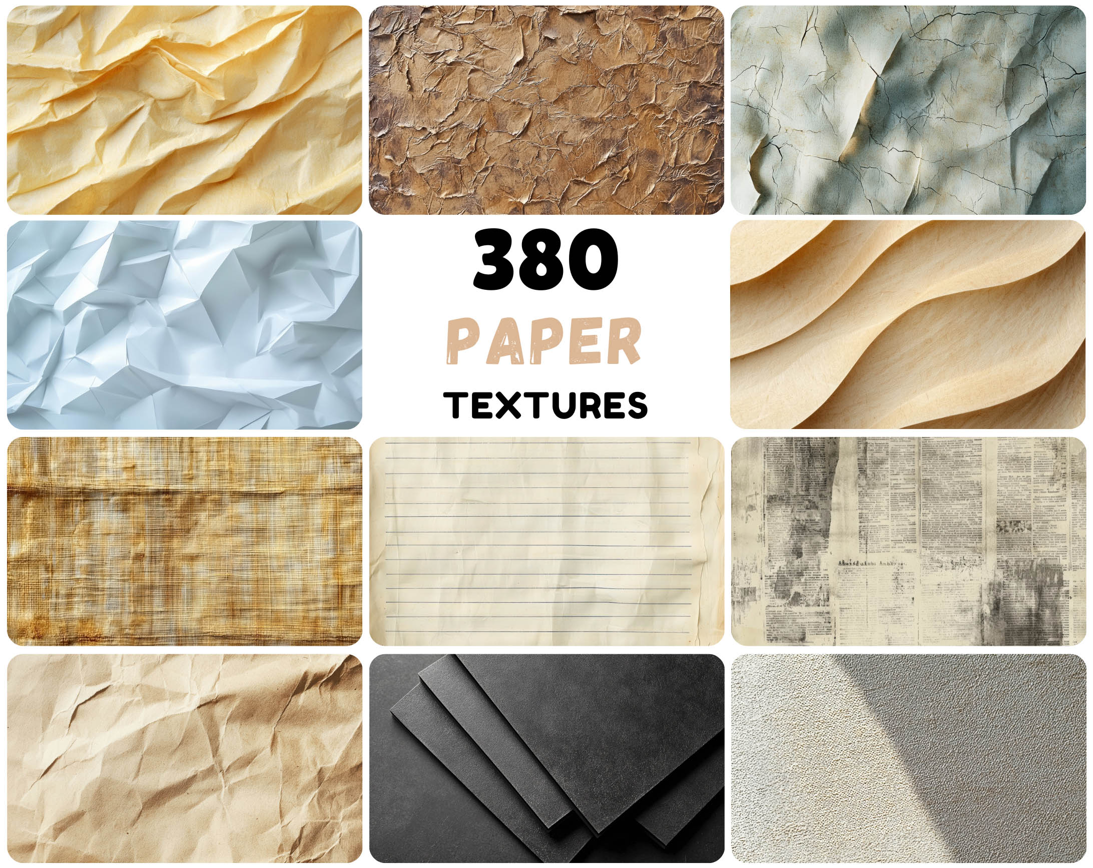 • 380 Paper Textures – vintage parchment, crumpled paper, and seamless variants.