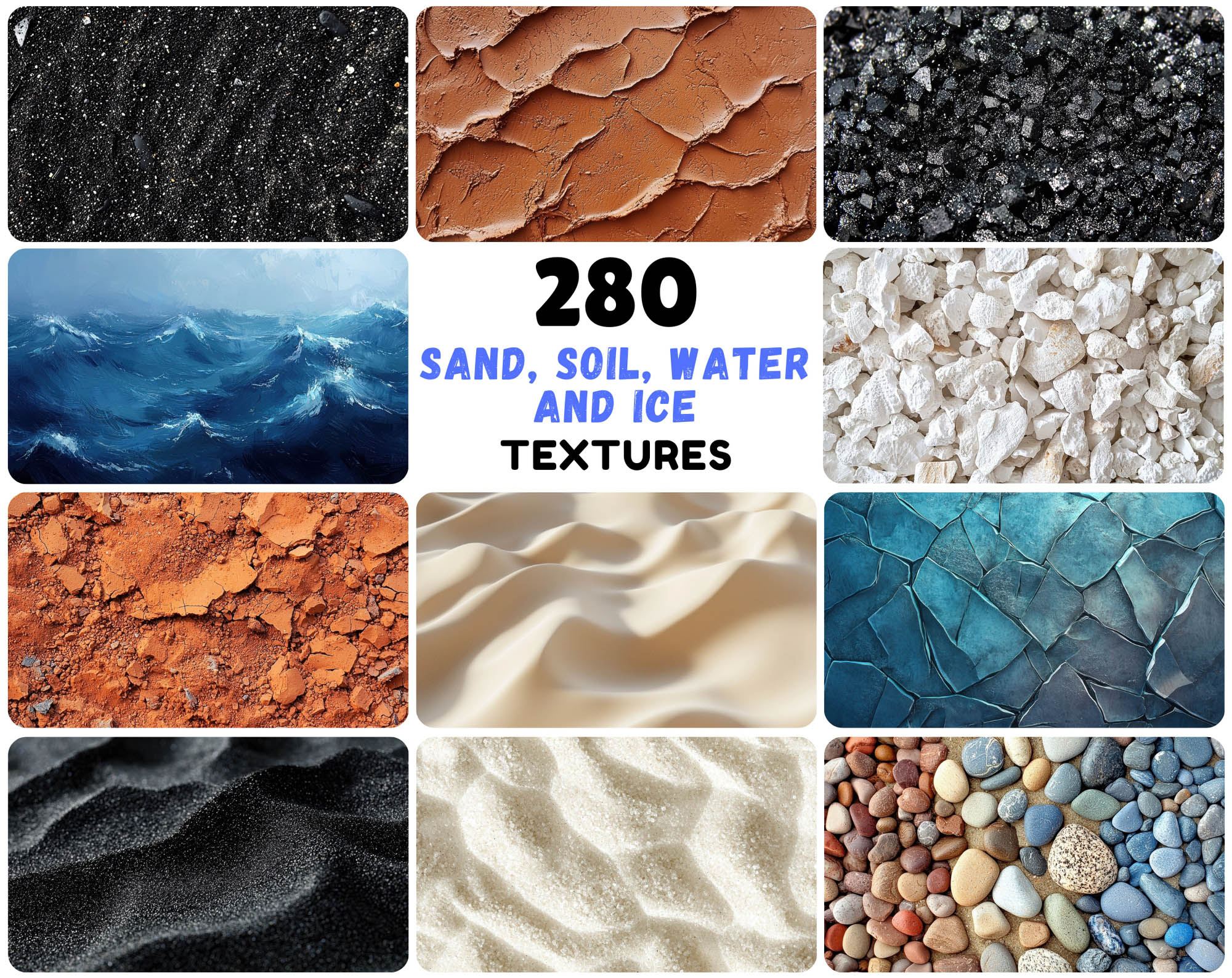 • 280 Sand, Soil, Water, and Ice Textures – natural elements captured in high detail.