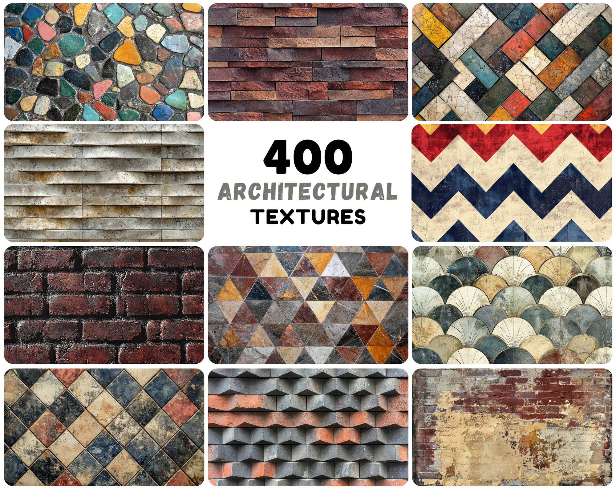 • 400 Architectural Textures – classic and modern surfaces inspired by architecture.