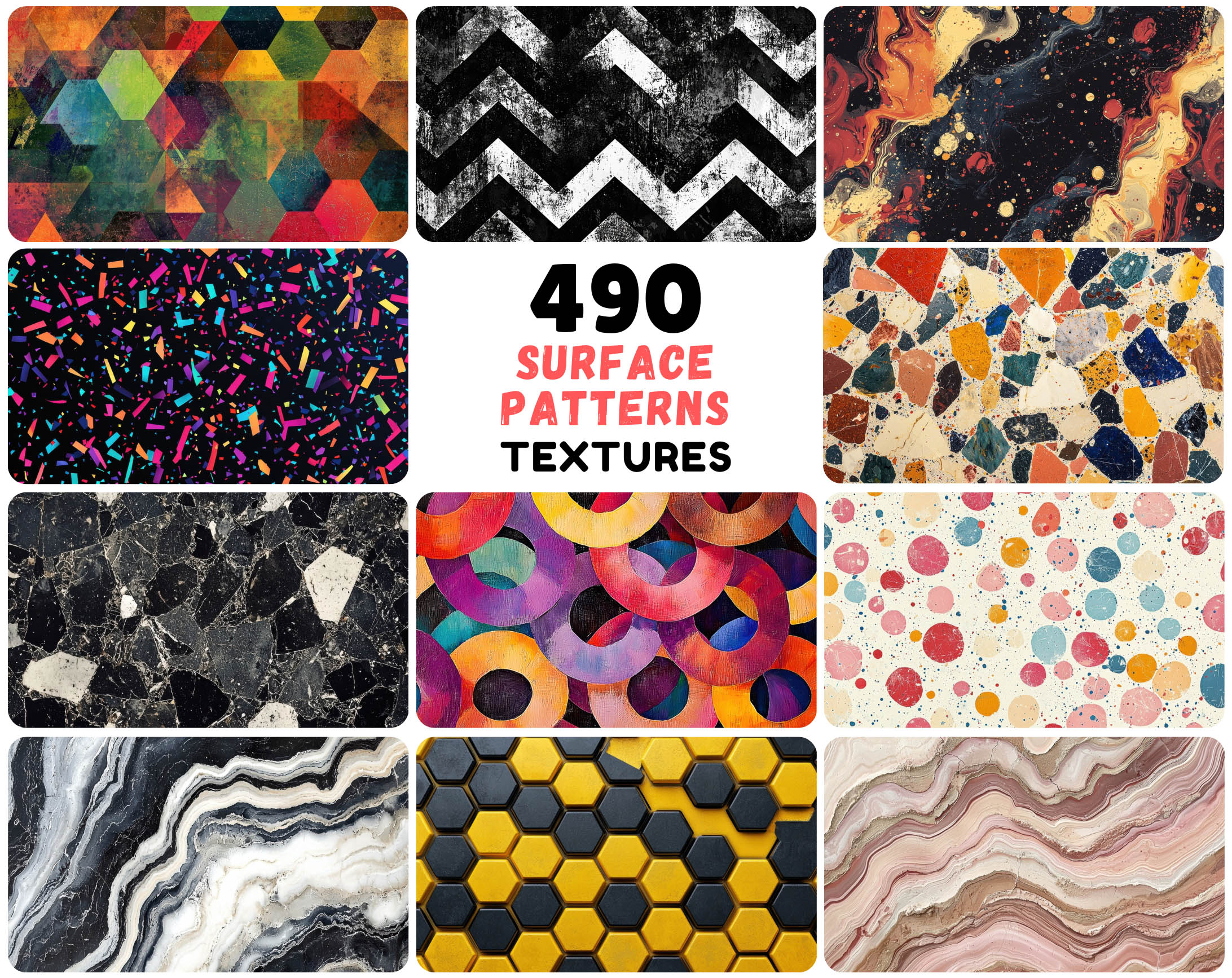 • 490 Surface Pattern Textures – from terrazzo to tie-dye, unique patterns that elevate your work.