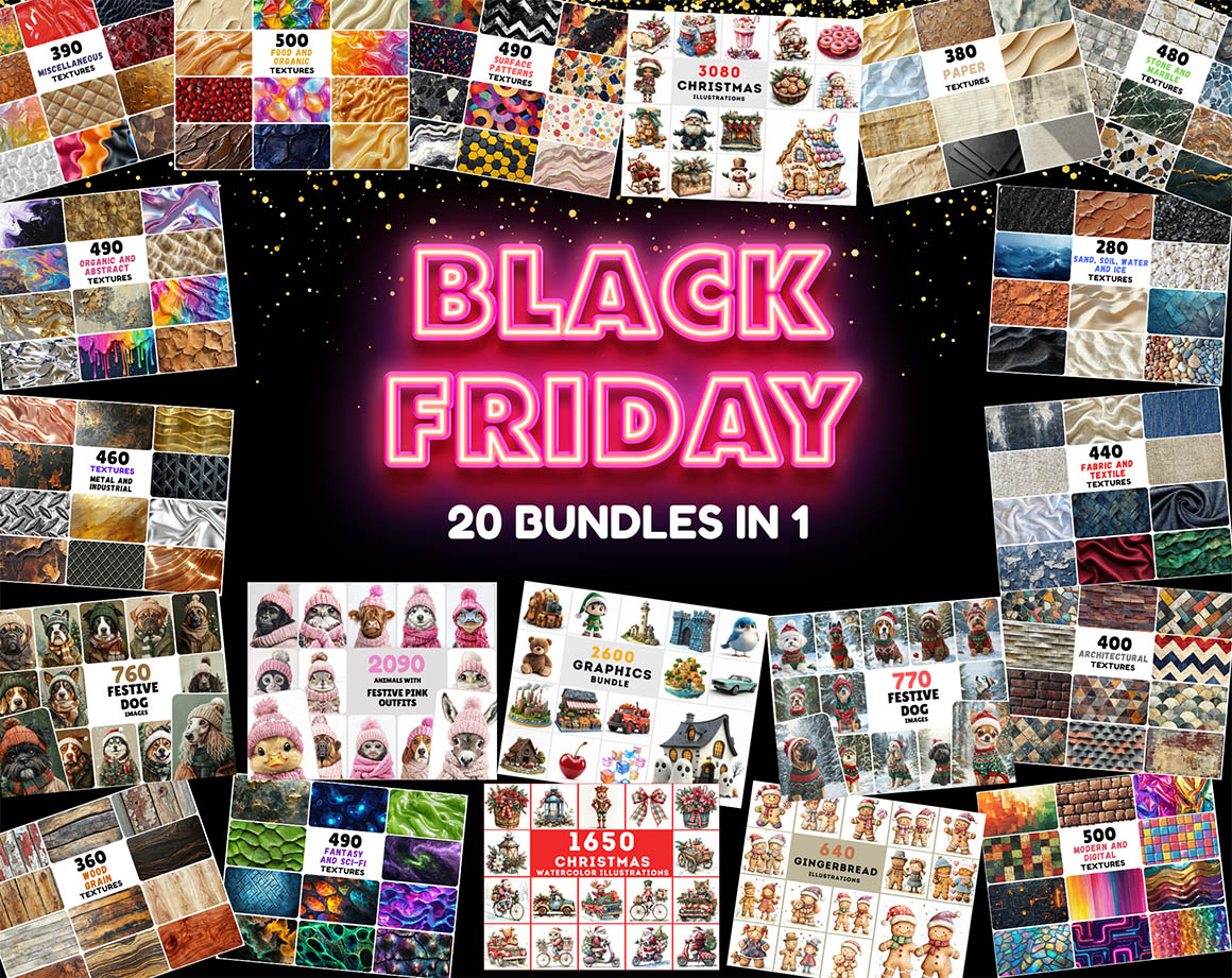 Get ready for the biggest design offer of the year. This Black Friday, you can unlock 20 exclusive bundles filled with high-resolution graphics, textures, and illustrations. Whether you want to create holiday visuals, professional mockups, or explore futuristic concepts, these bundles will upgrade your entire design toolkit.