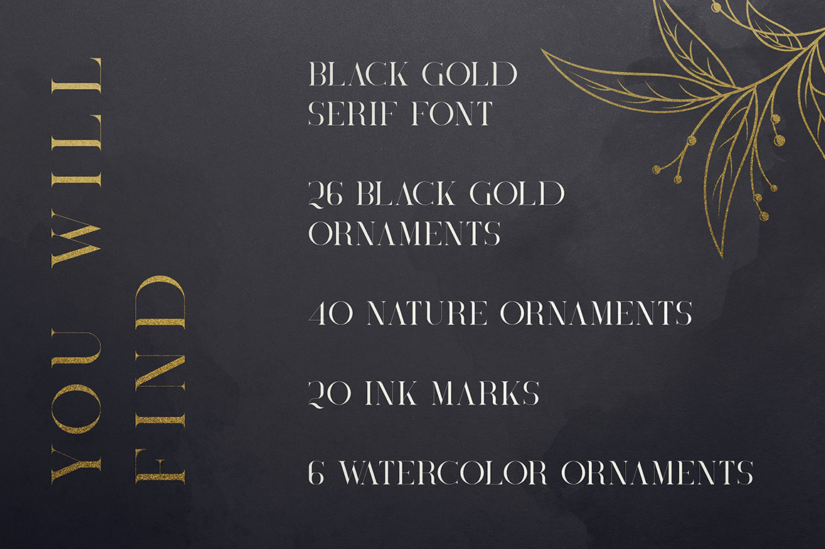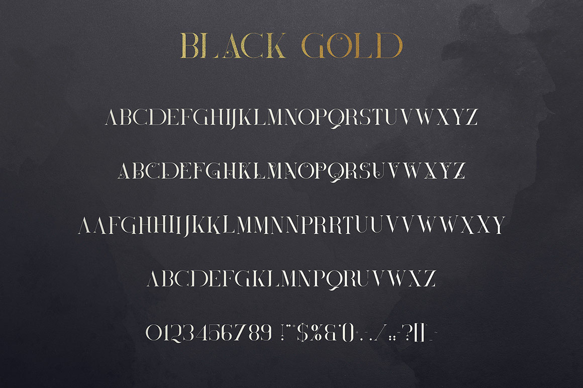 - Black Gold serif font with tons of alternative glyphs and multilingual support