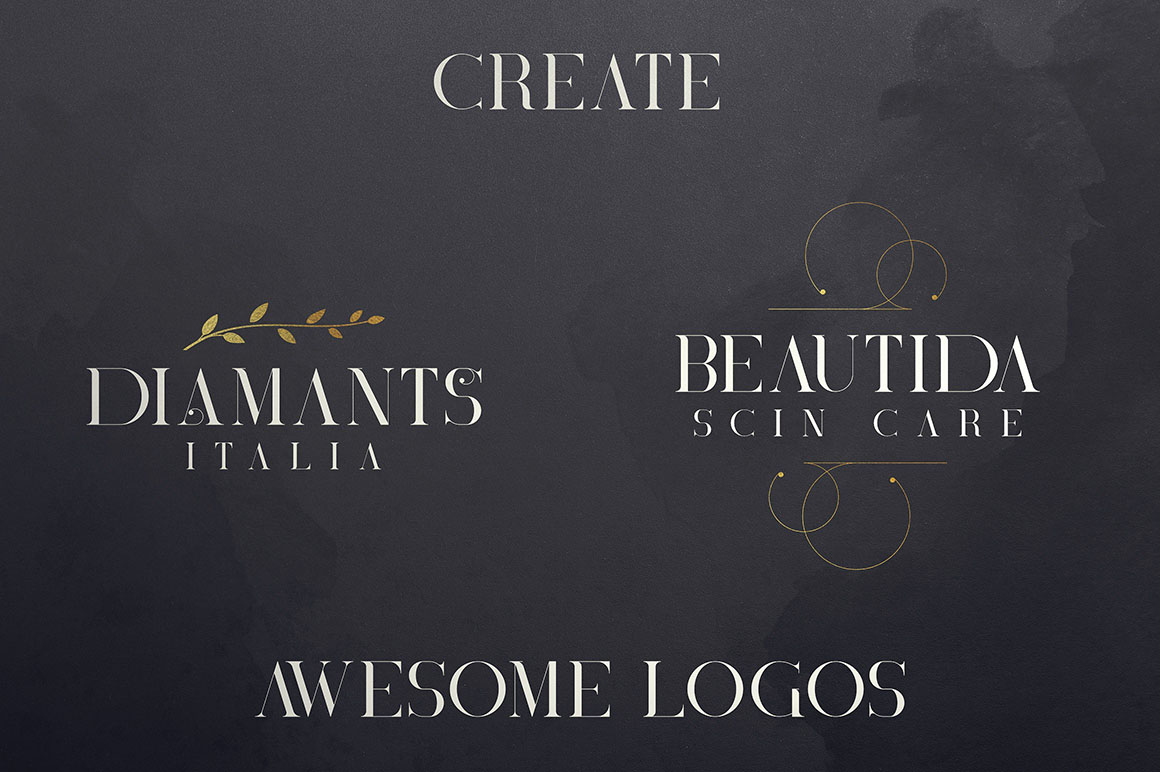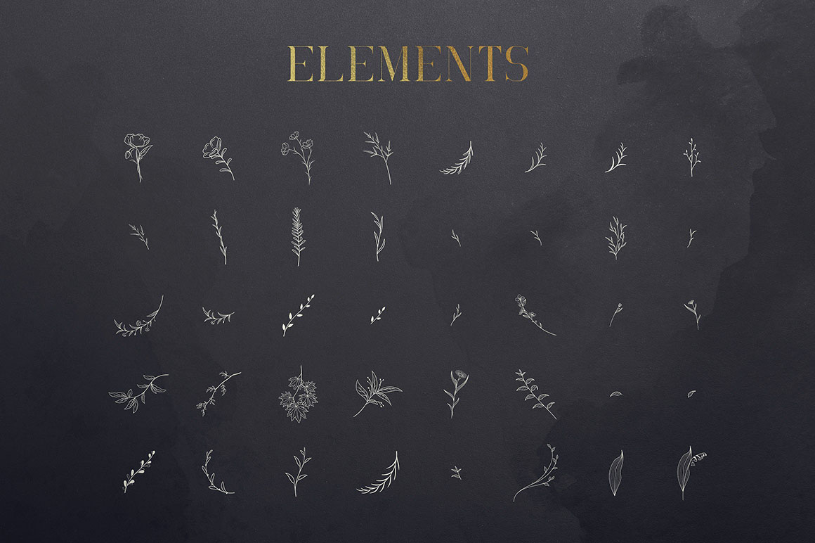 Brand new modern or elegant style font and extra graphic elements. Sophisticated font with tons of alternative glyphs, ornaments, nature elements, photoshop styles, watercolour shapes, ink marks and multilingual support. It’s a very versatile font that works great in large and small sizes.