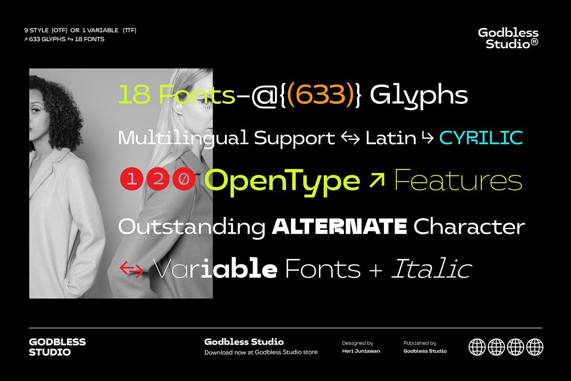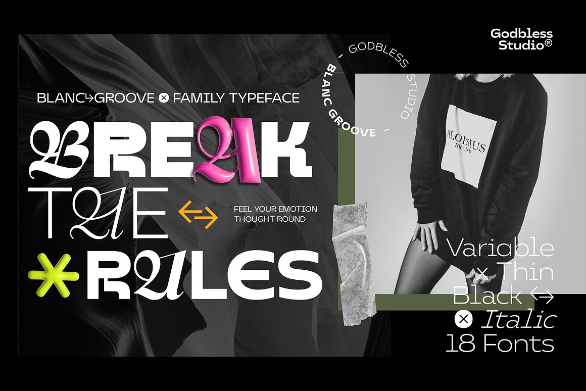 Blanc Groove – Variable Font from Godbless Studio contains 18 multilingual fonts for your new modern or futuristic projects! Don’t miss this trendy & sharp style branding font 😉