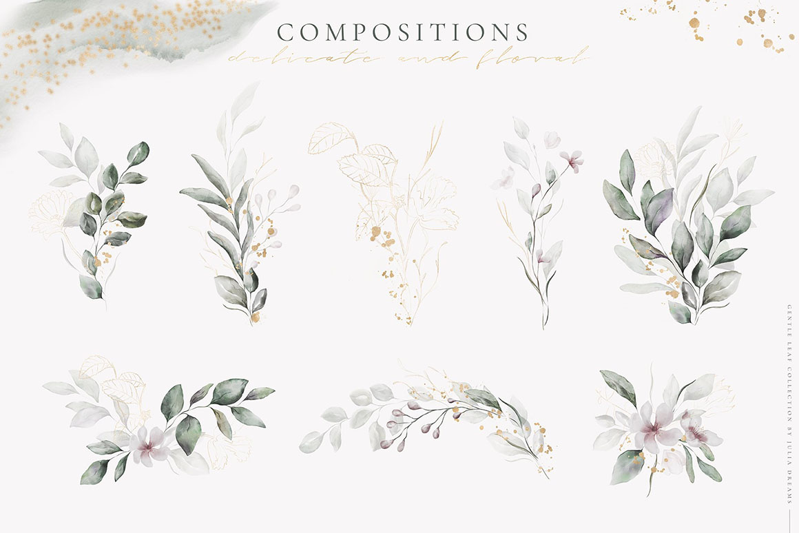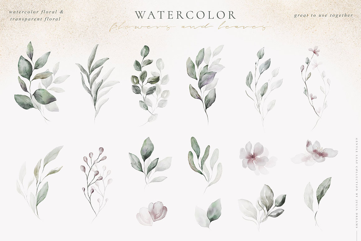 2. Gentle Leaf Watercolor Collection from Julia Dreams