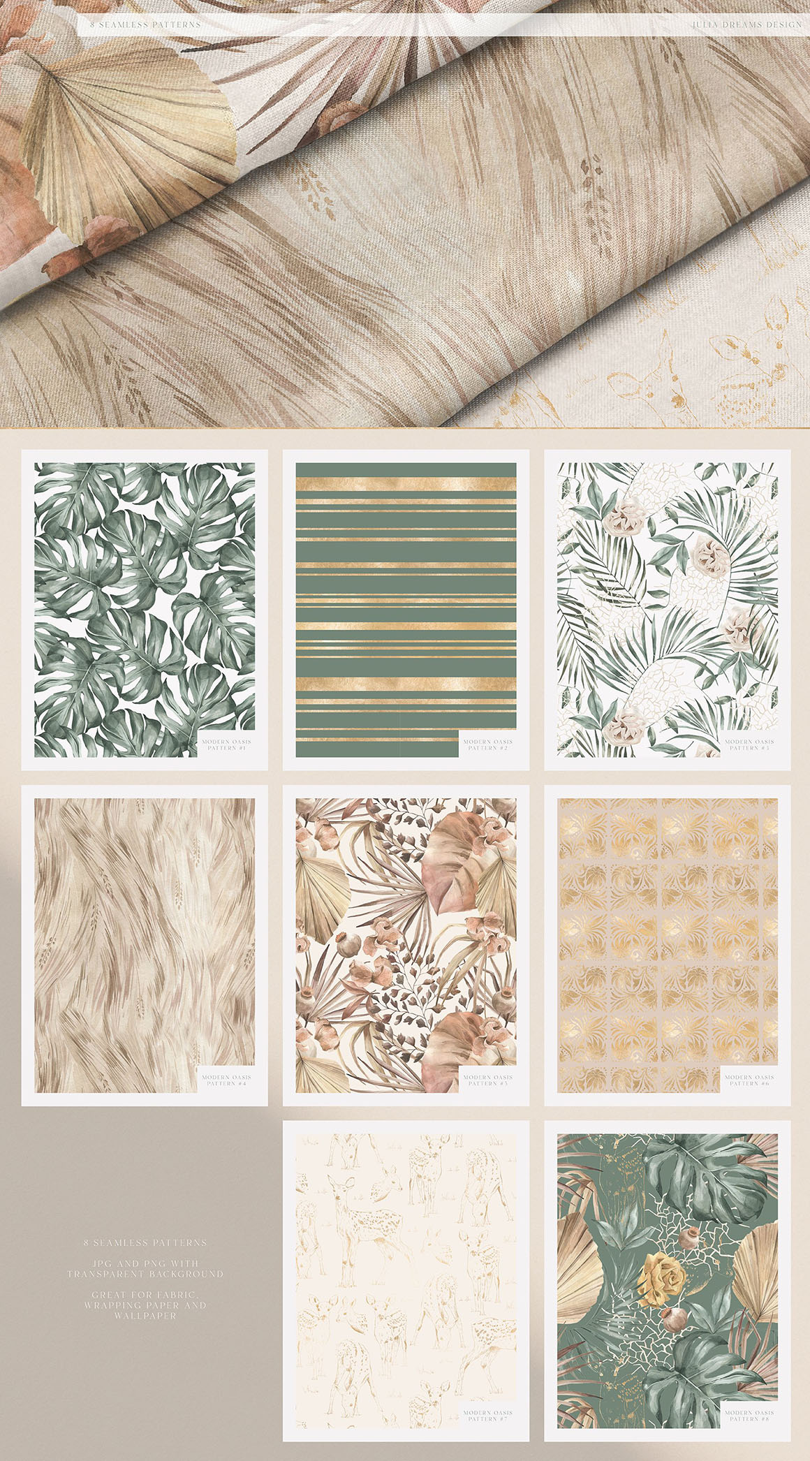 Modern Oasis Collection great for logo, posters, cards, branding, covers, gifts, social media accounts, wrapping paper, wallpaper, fabric, scrapbooking, stickers, sites, blogs, invitations and much more!