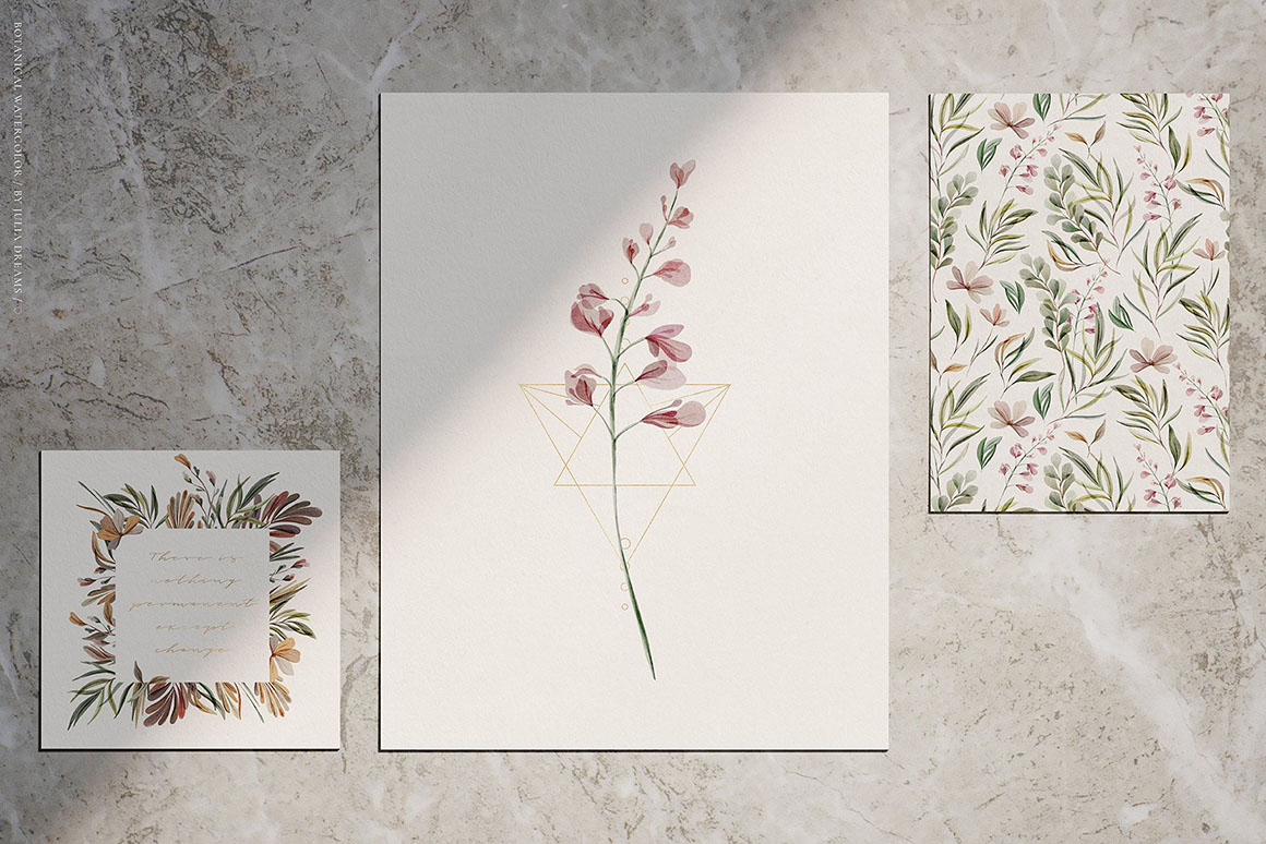 Watercolor Botanical Collection great for logo, posters, cards, branding, covers, gifts, social media accounts, wrapping paper, wallpaper, fabric, scrapbooking, stickers, sites, blogs, invitations and much more!