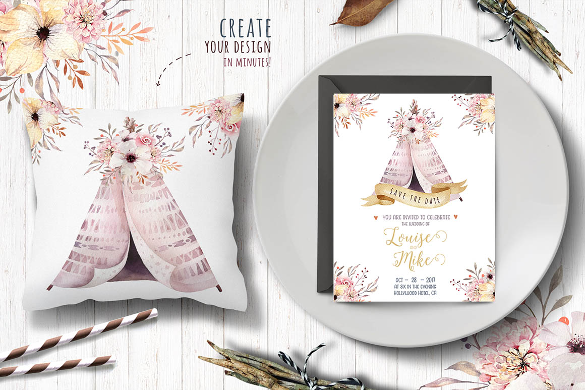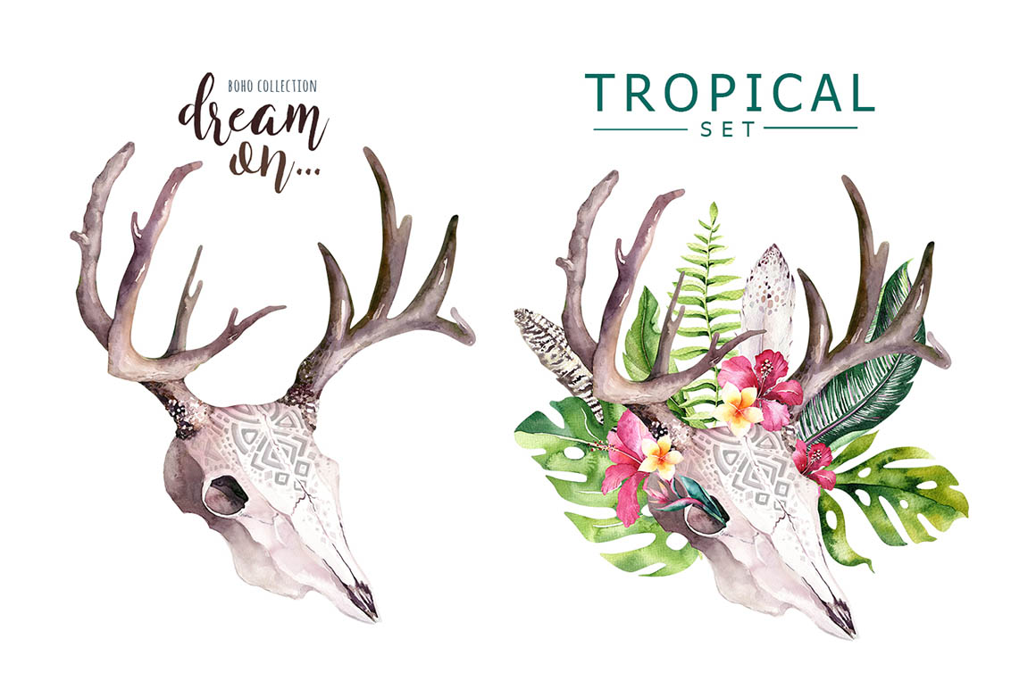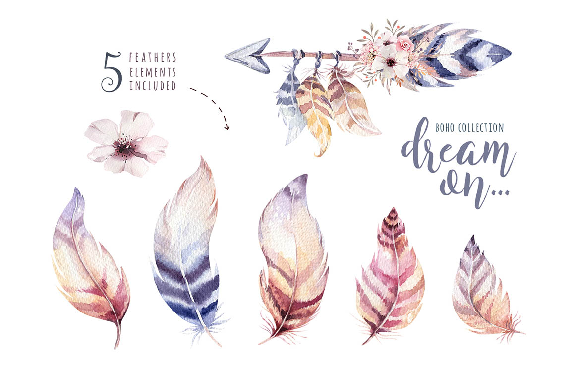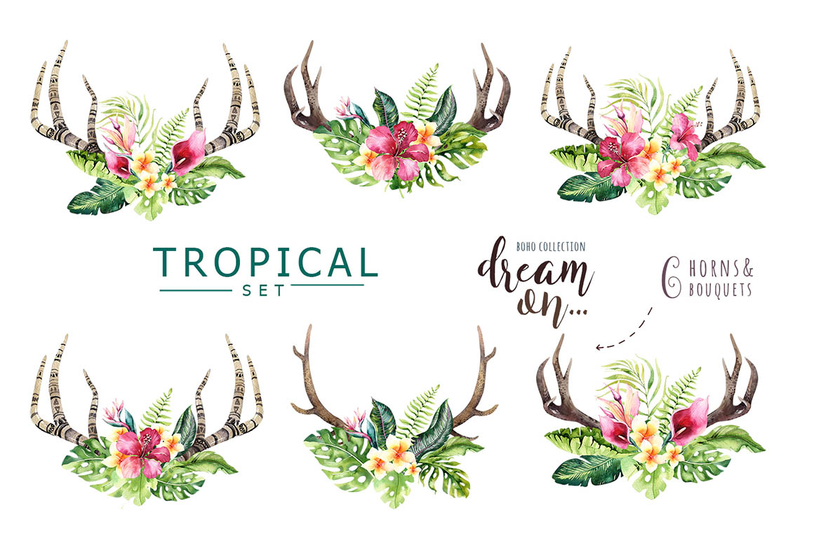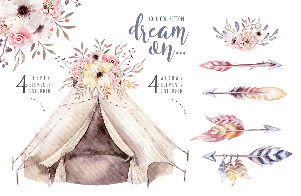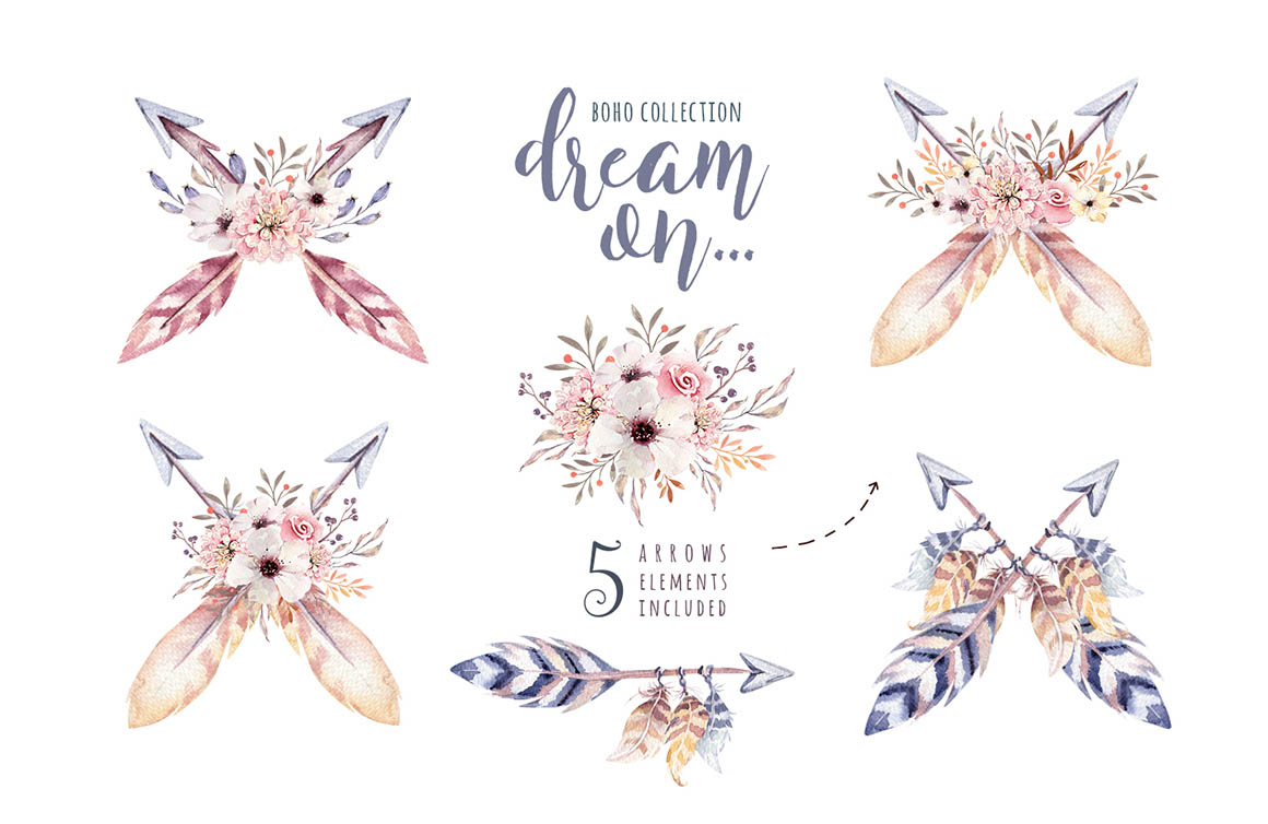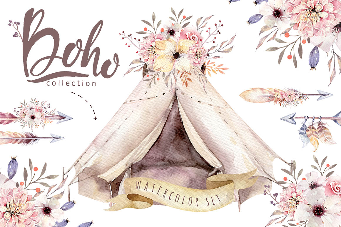 If you are looking for fancy & boho style watercolor illustrations or graphic ellements then you are at the right place because here you will get a great collection of amazing illustrations for your new projects. These graphics are in hi-res PNG or JPG formats so all are great for your new web design or any print design projects. Enjoy 😉