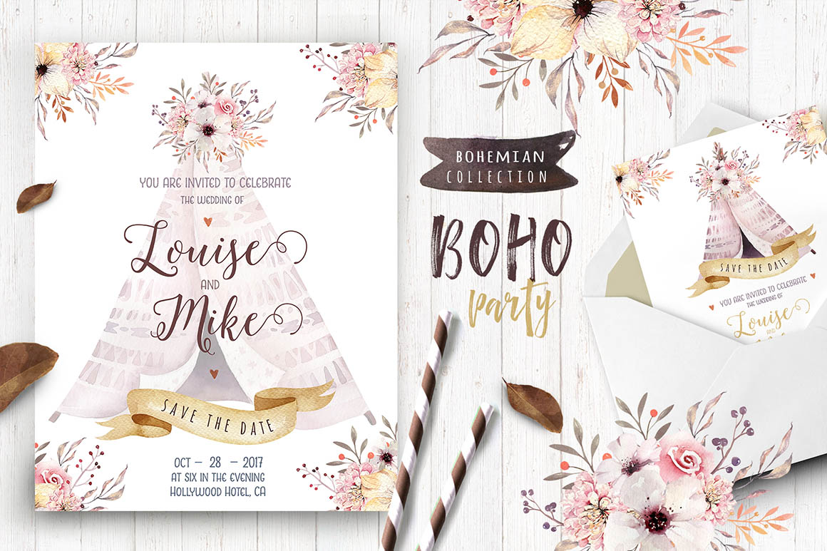 Amazing handdrawn, colorful and fancy illustrations for your new BOHO style projects! Enjoy 😉