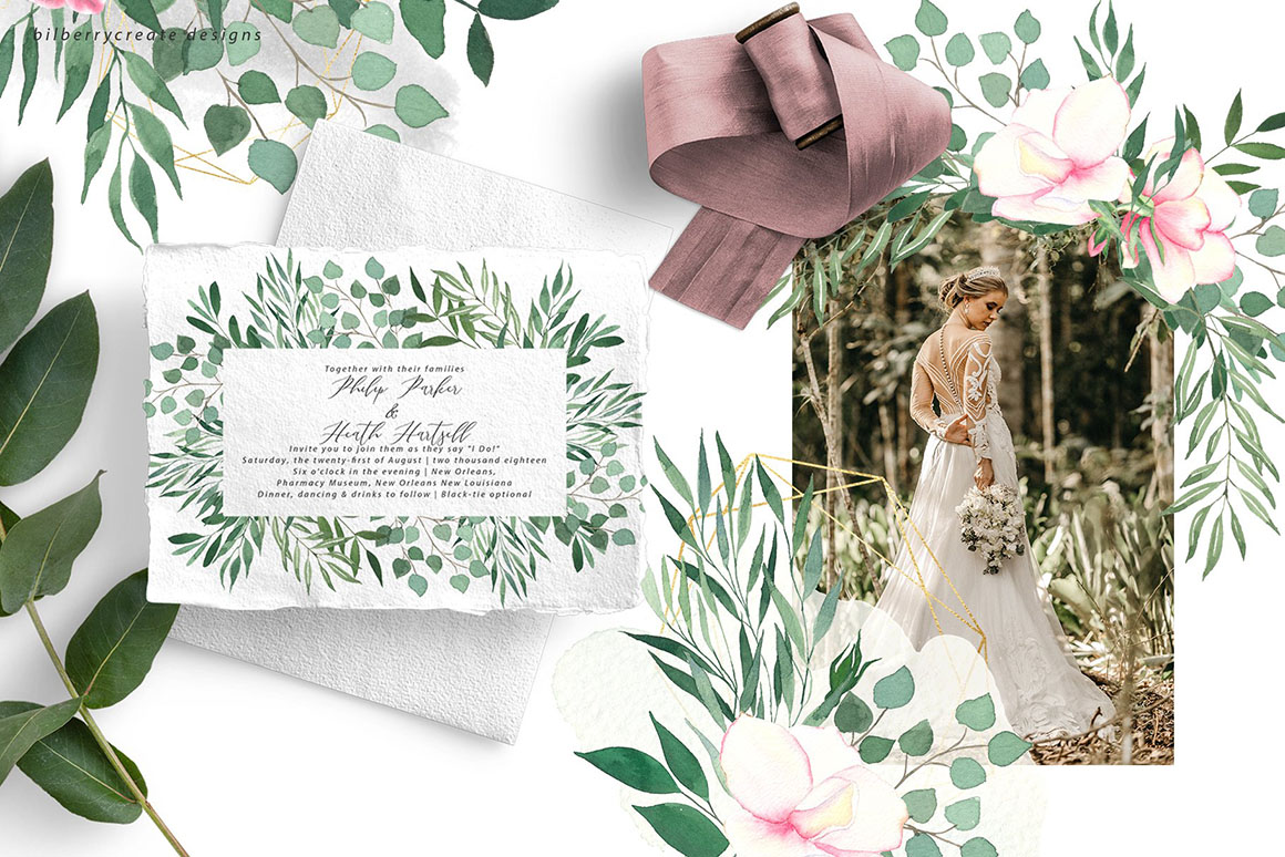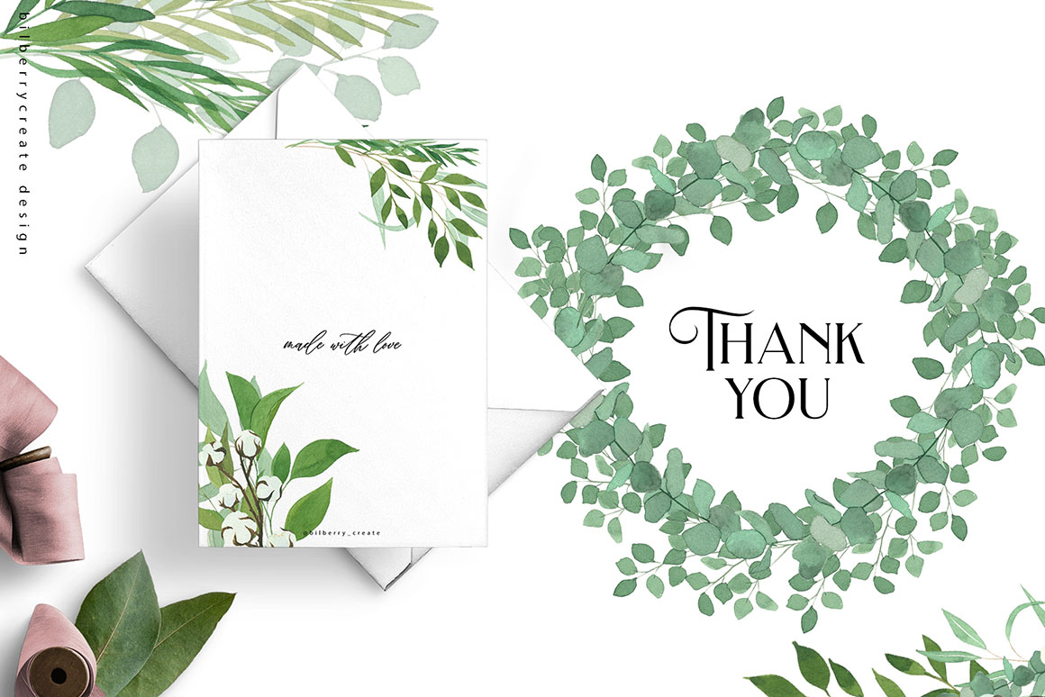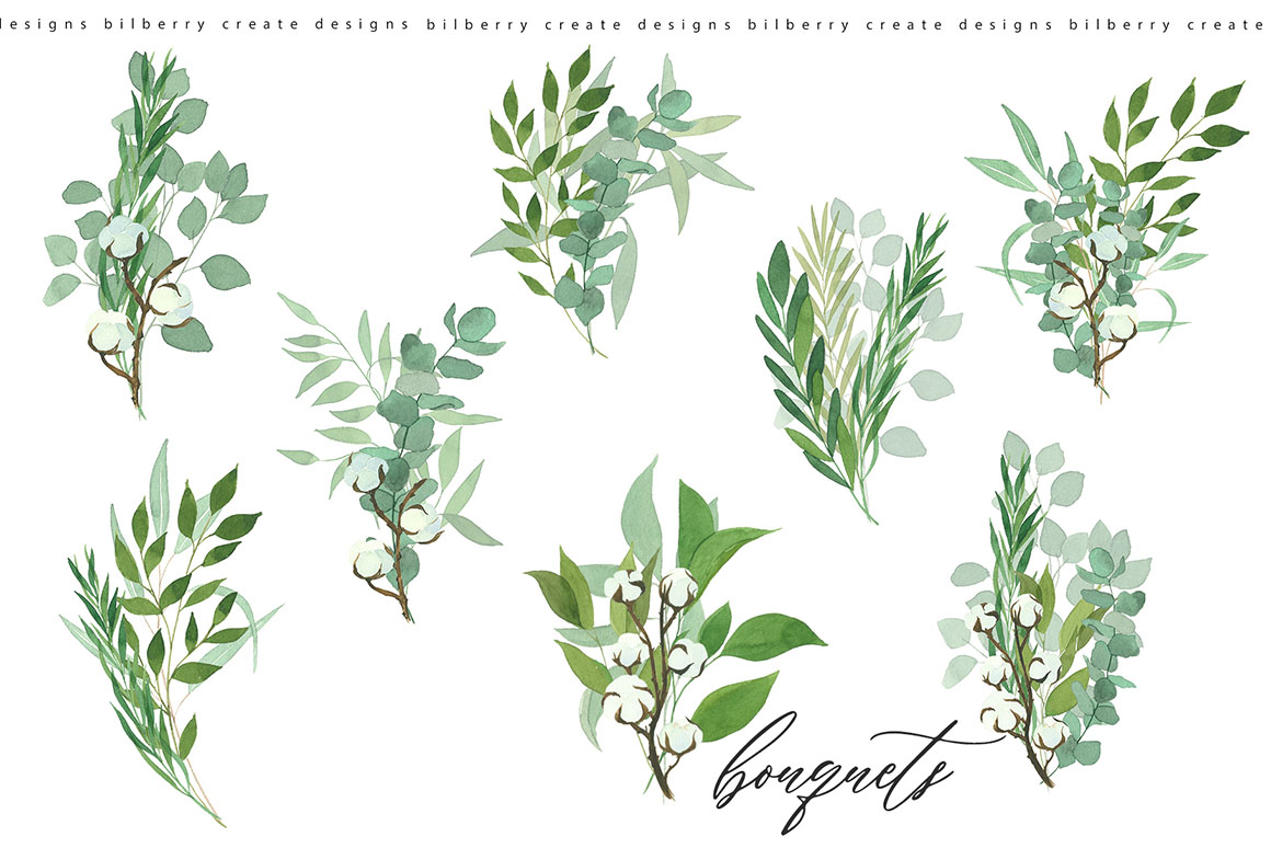 Greenery Botanica NEW design set filled individual watercolour elements, watercolour green leaves, watercolour wreath, watercolour bouquets, watercolour seamless pattern. Be sure to click on the image to see all elements. This product was created to help you make your digital images even more beautiful and unique. This pack can be used to create anything as you wish, logos invitation cards, make scrapbooking, wedding cards, birthday cards, home decor, packaging holiday gifts, party decorations, print on fabrics and so much more. These elements are ideal for the creation of the corporate identity of your flowers shop or your small store. Or if you suddenly need to decorate your room or create a wedding invitation. Add this beautiful flowers and leaves to create a postcard.