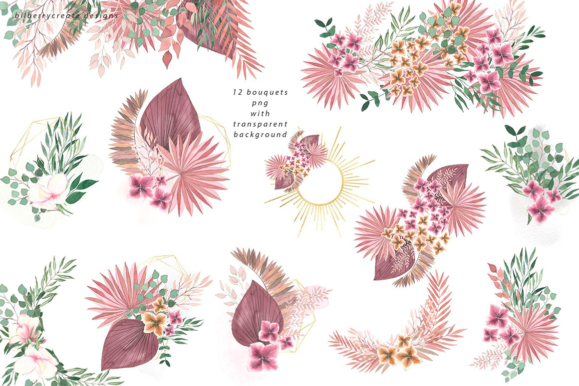 Boho Miracle NEW design set filled over 80 elements , individual elements, watercolour green leaves, watercolour pink leaves, watercolour flowers, seamless pattern, bouquets, sun mandala, frames, wreath. Be sure to click on the image to see all elements. This product was created to help you make your digital images even more beautiful and unique. This pack can be used to create anything as you wish, logos invitation cards, make scrapbooking, wedding cards, birthday cards, home decor, packaging holiday gifts, party decorations, print on fabrics and so much more. These elements are ideal for the creation of the corporate identity of your flowers shop or your small store. Or if you suddenly need to decorate your room or create a wedding invitation. Add this beautiful flowers and leaves to create a postcard.