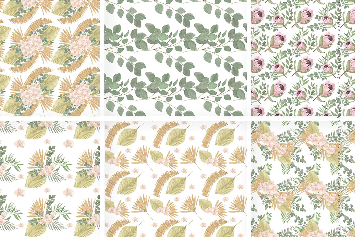 - 4 boho, elegant, floral, summer, tropical & interior style illustration sets