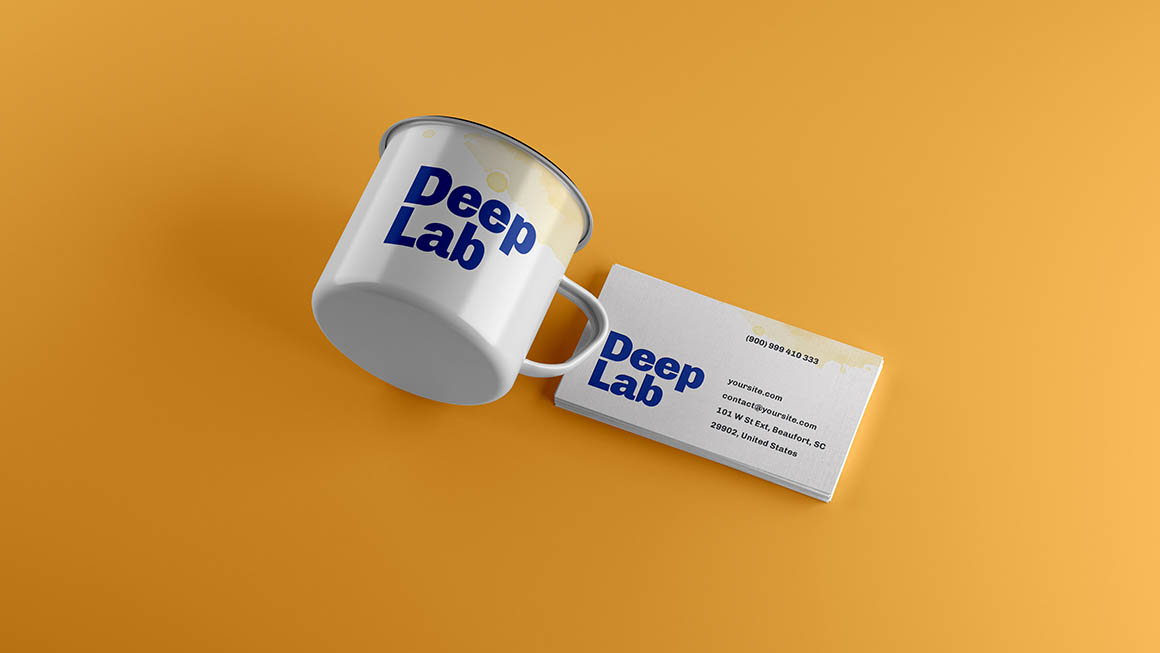 3 FREE business card & enamel mug – presentation or branding mock-up template from Deep Lab. Download and enjoy 😉