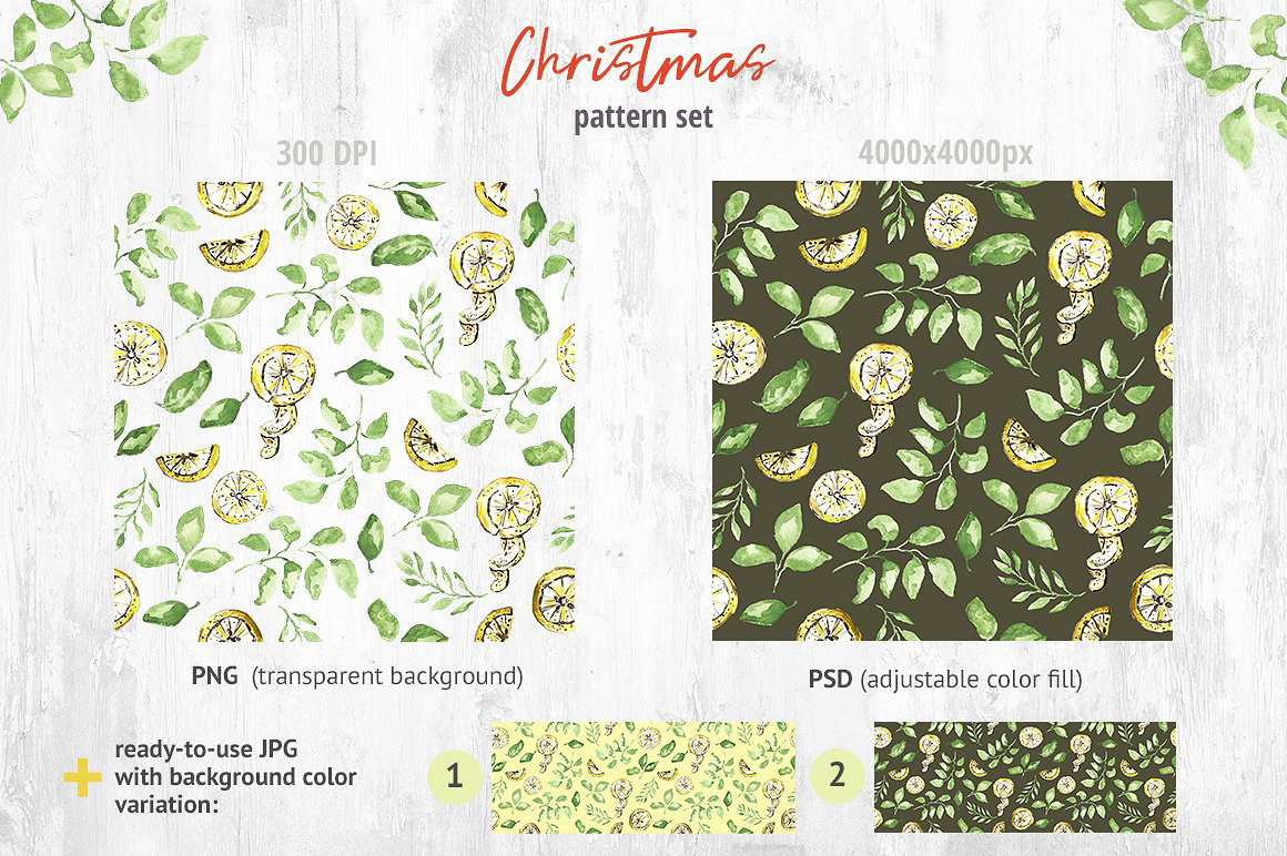 Set includes high resolution seamless patterns in 4000x4000px, 300 DPI: