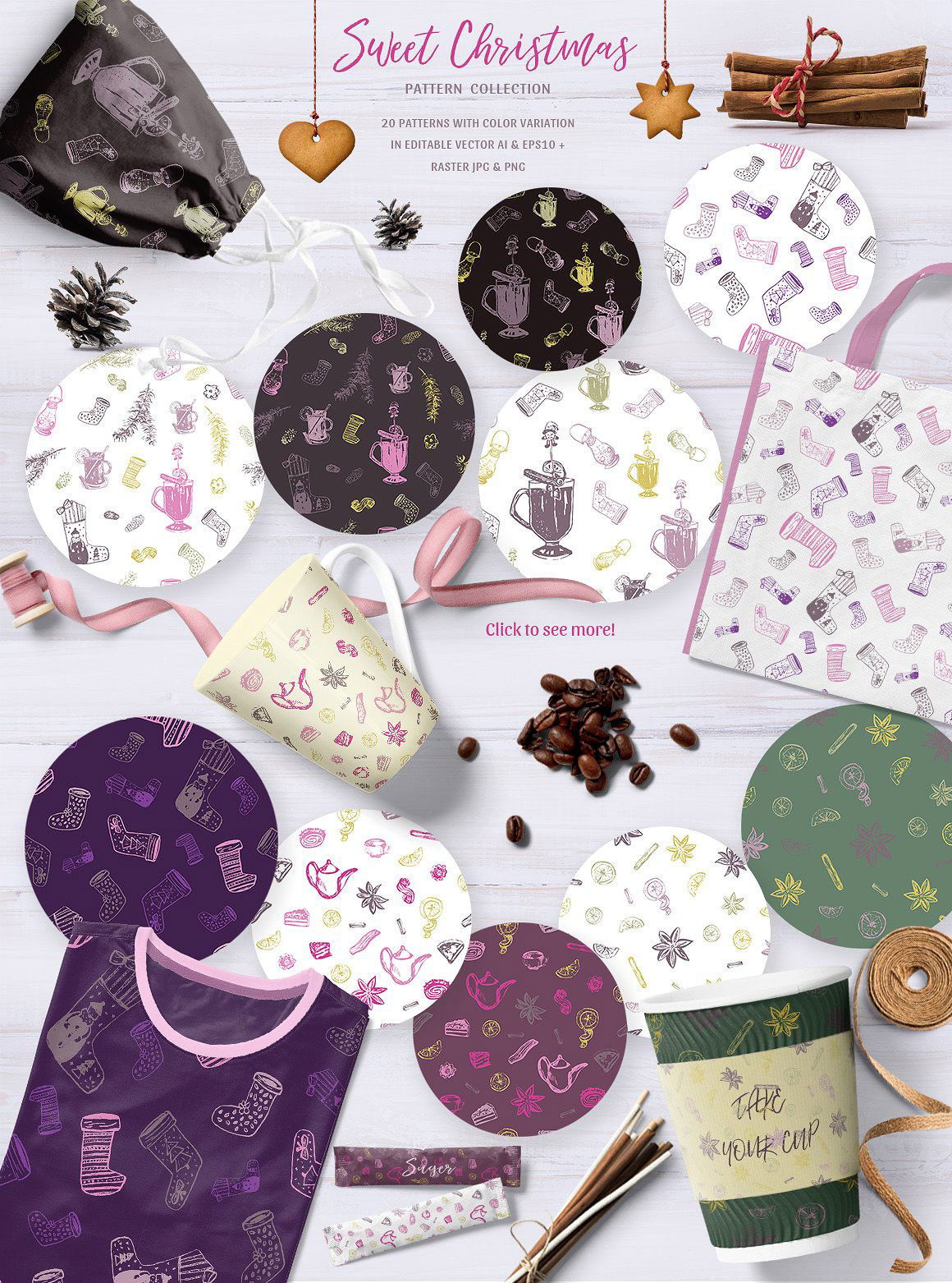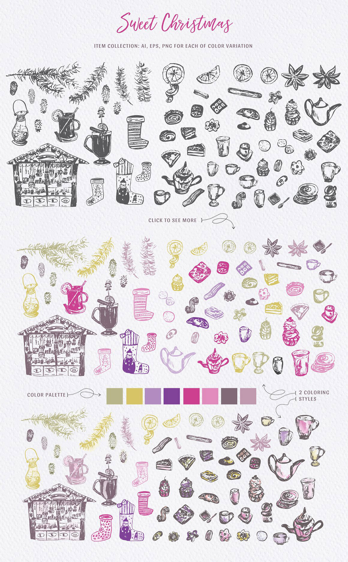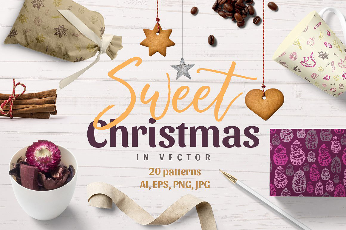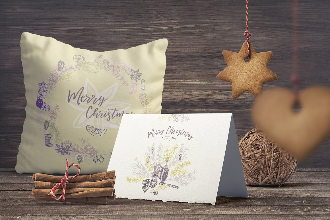 Bright colors will give a wonderful mood and decorate any objects – postcards, textile, cups, posters, bags, stickers, T-shirts. Pre-designed pieces help you to create an awesome design quickly and efficiently. All you need to create wonderful Christmas mood!