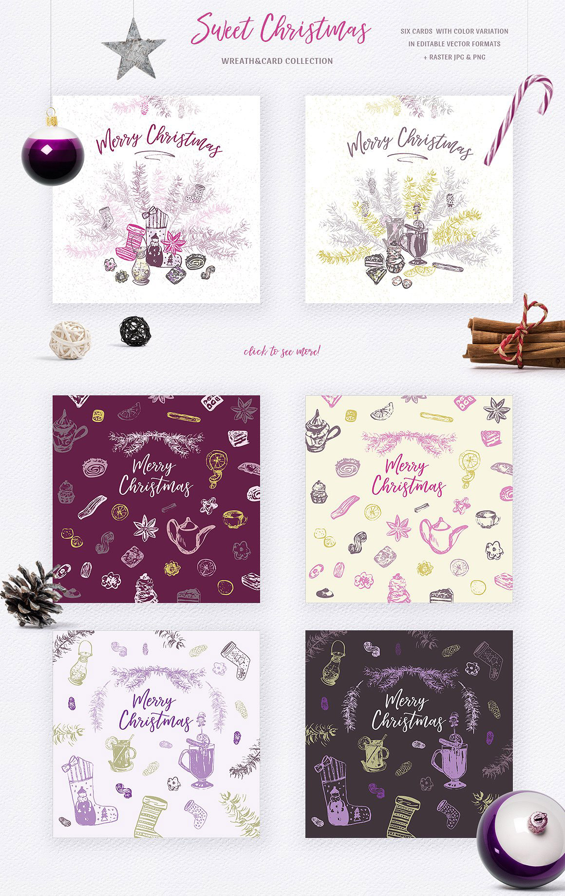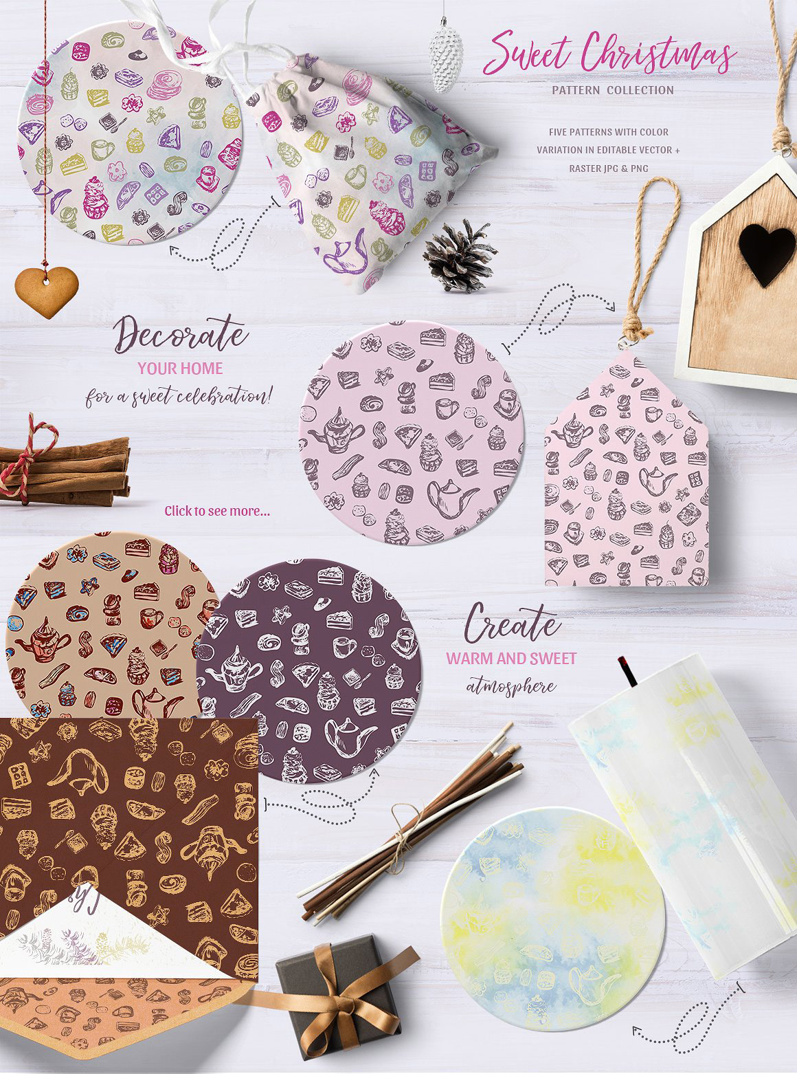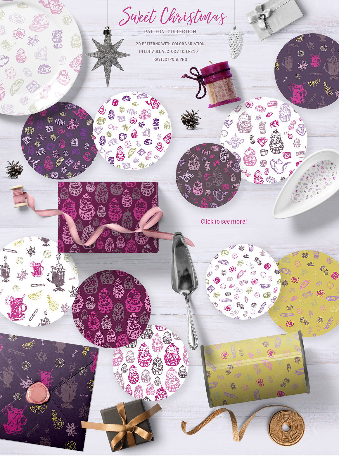 Bright colors will give a wonderful mood and decorate any objects – postcards, textile, cups, posters, bags, stickers, T-shirts. Pre-designed pieces help you to create an awesome design quickly and efficiently. All you need to create wonderful Christmas mood!