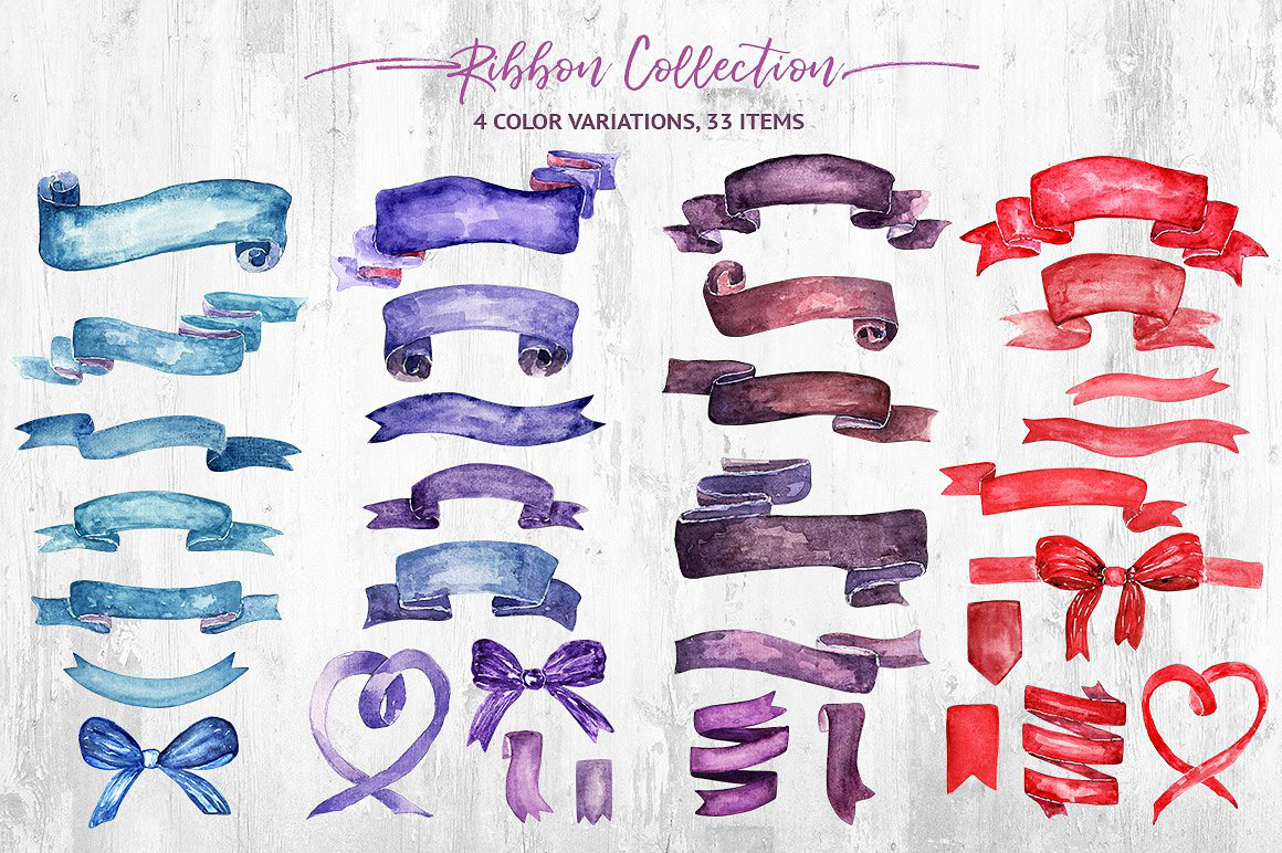 - 33 ribbons, banners and bows (approx. 3000x1000px, 2000x500px)