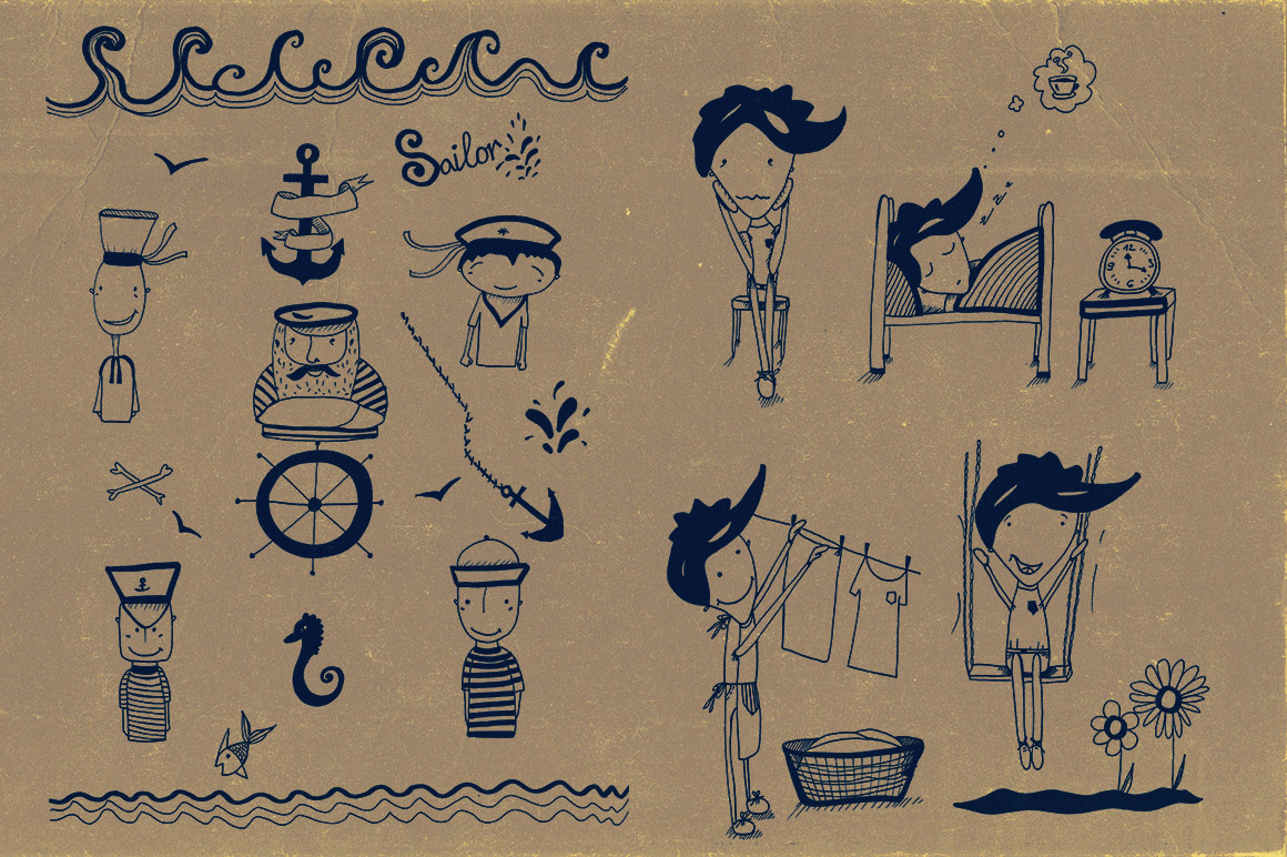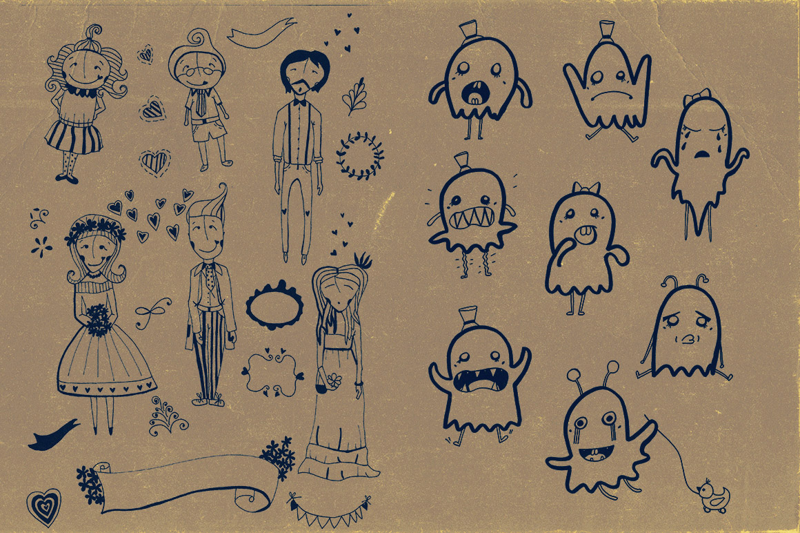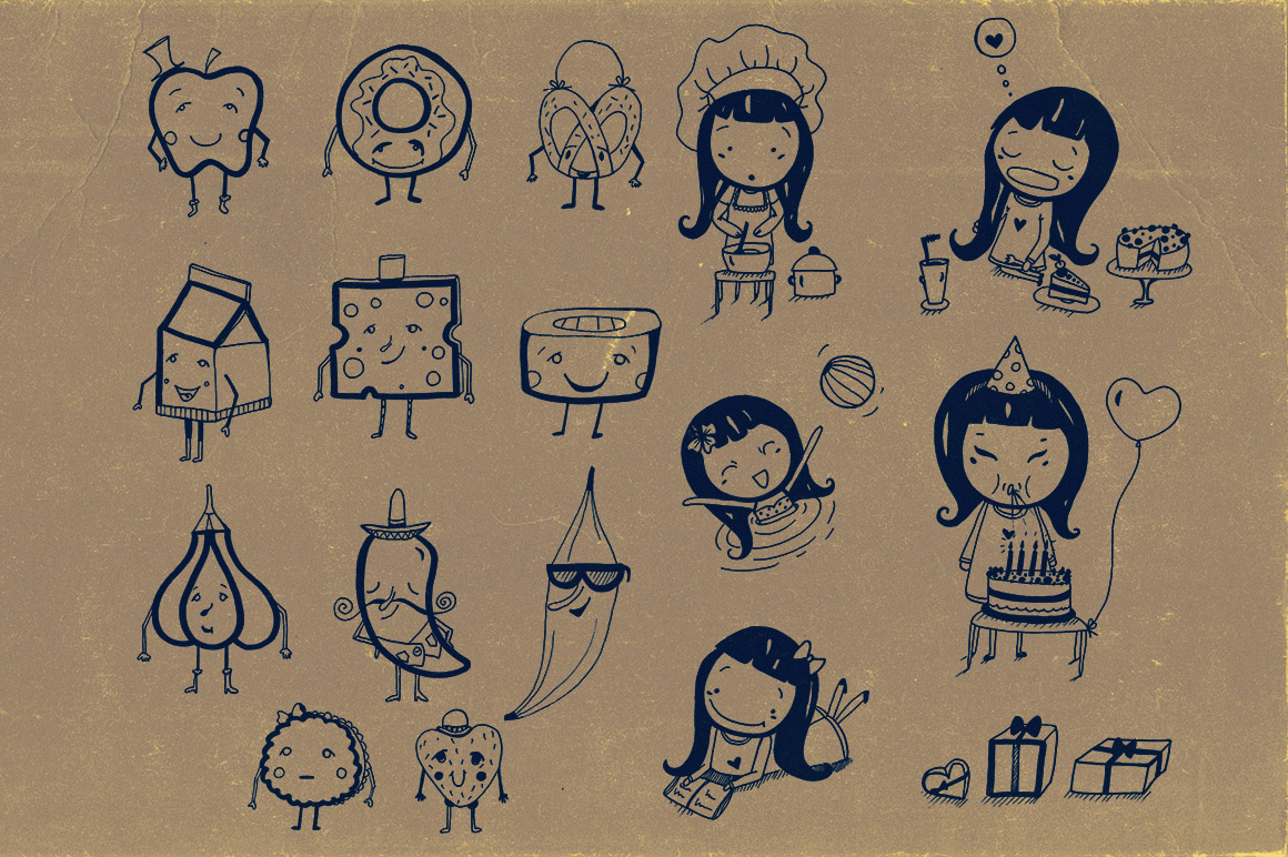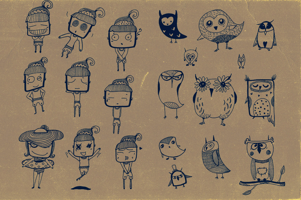 You’ll find here 6 retro & vintage branding items & 1 cute character illustrations (png images)