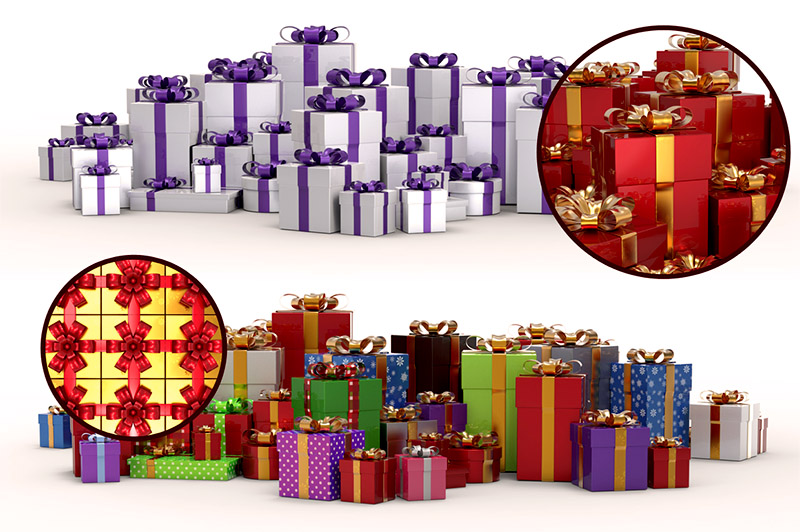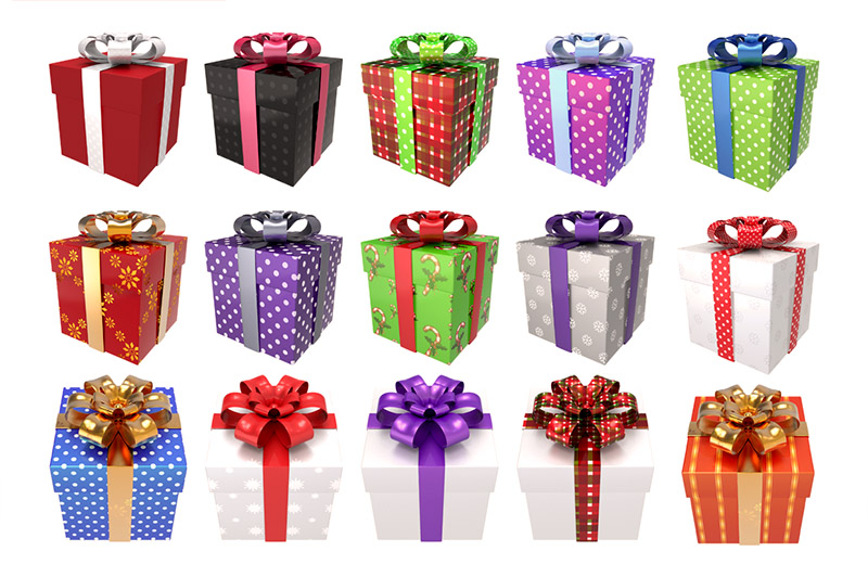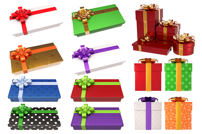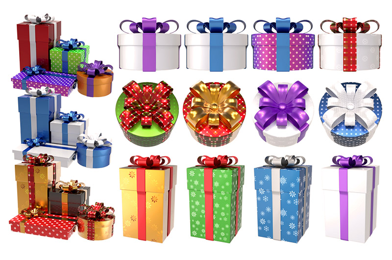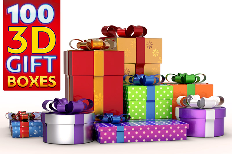 Set of 100 colorful 3D gift boxes. 90 Transparent Png – size between 1024-1600px & 10 Jpg – size between 1600-2560px.