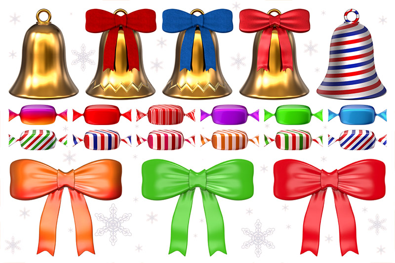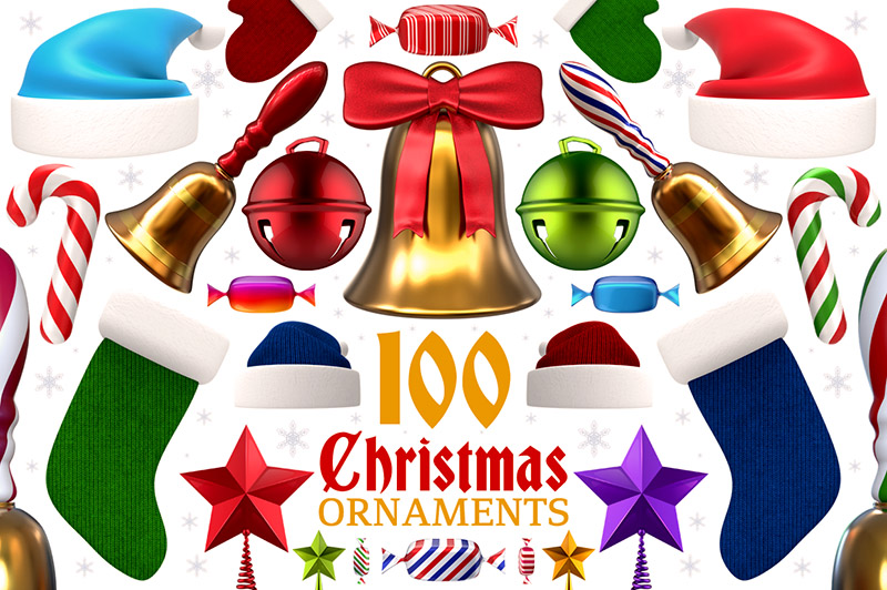 Christmas Ornaments and Items – 3D. Pack Contain 100 Images: Bell – 5 Transparent PNG 1200px, Candy – 12 Transparent PNG 1300px, Candy Cane – 26 Transaprent PNG + 2 Jpg 1200px, Glove – 3 Transparent PNG 1200px, Reindeer Bell – 4 Transparent Png 1024px, Santa Bell – 15 Transparent Png 1400px, Santa Hat – 10 Transparent Png 1200px, Santa Sack – 2 Transparent Png 1500px, Star – 15 Transparent Png 1400px, Christmas Stocking – 3 Transparent Png 1600px, Bow – 3 Transparent Png.