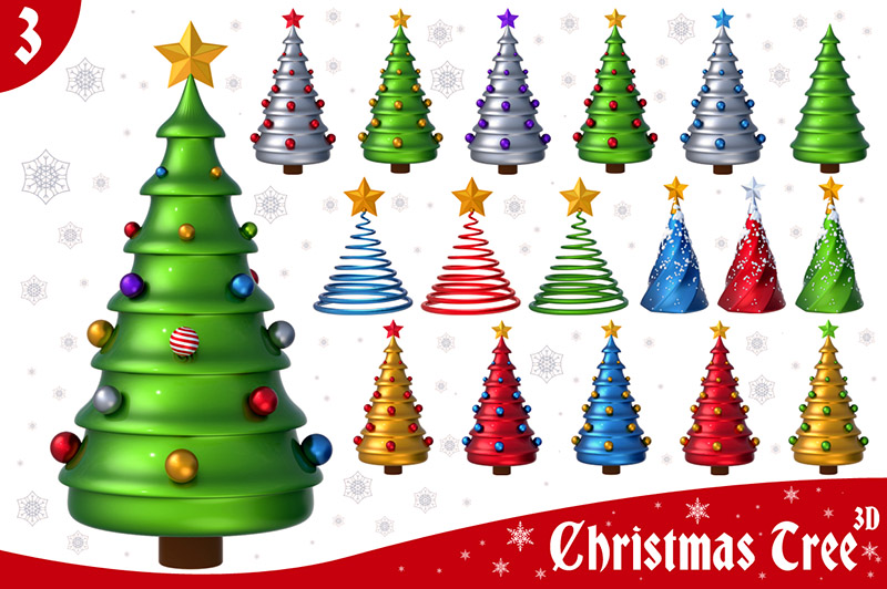 5. Christmas Tree 3D Set 1 by Pixaroma