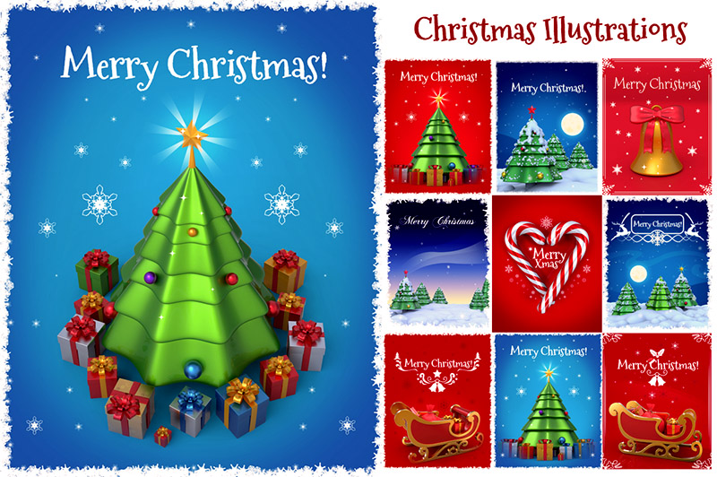 10 Christmas illustrations available with and without Merry Christmas text. Total of 30 Jpg images at 1600x2000px 72ppi.