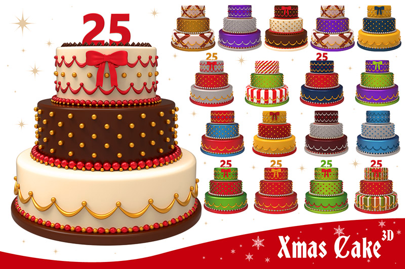 A set of 18 cakes that you can use for Christmas, Birthday, Wedding, etc. – some have number 25 on top (December 25th). 18 Transparent Png images at 1100×1300 px.