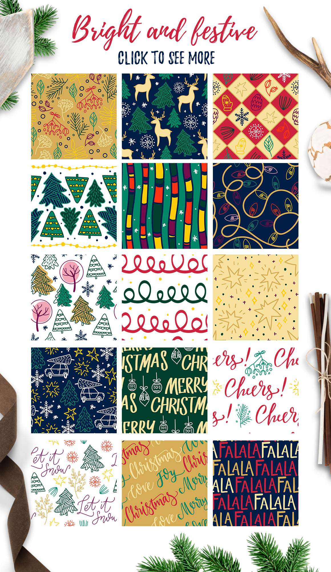 Cute & funny style illustrations, patterns & graphics for your new Christmas projects!