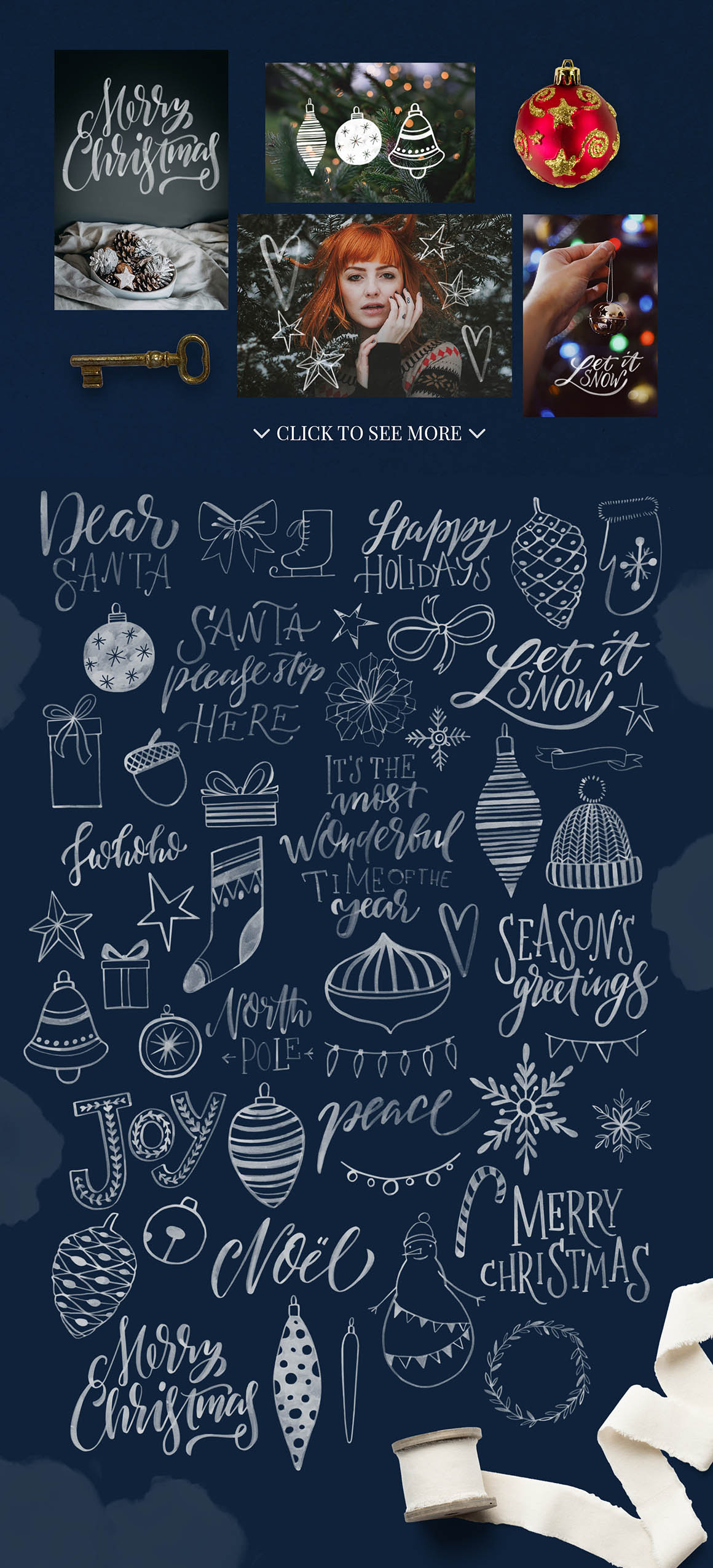 You will get 39 hand lettered quotes & fun clipart that will help you to decorate your Christmas design. Product is very good fot t-shirts, photo overlays, souvenir mugs, gift tags and many more! Combine elements in order to create your design. All you need for holidays in this set – beauty hand drawn letters, snowflakes, decorative elements, tree, branches and so on. Please note: lettering is hand drawn. All files come both in vector and PNG format.