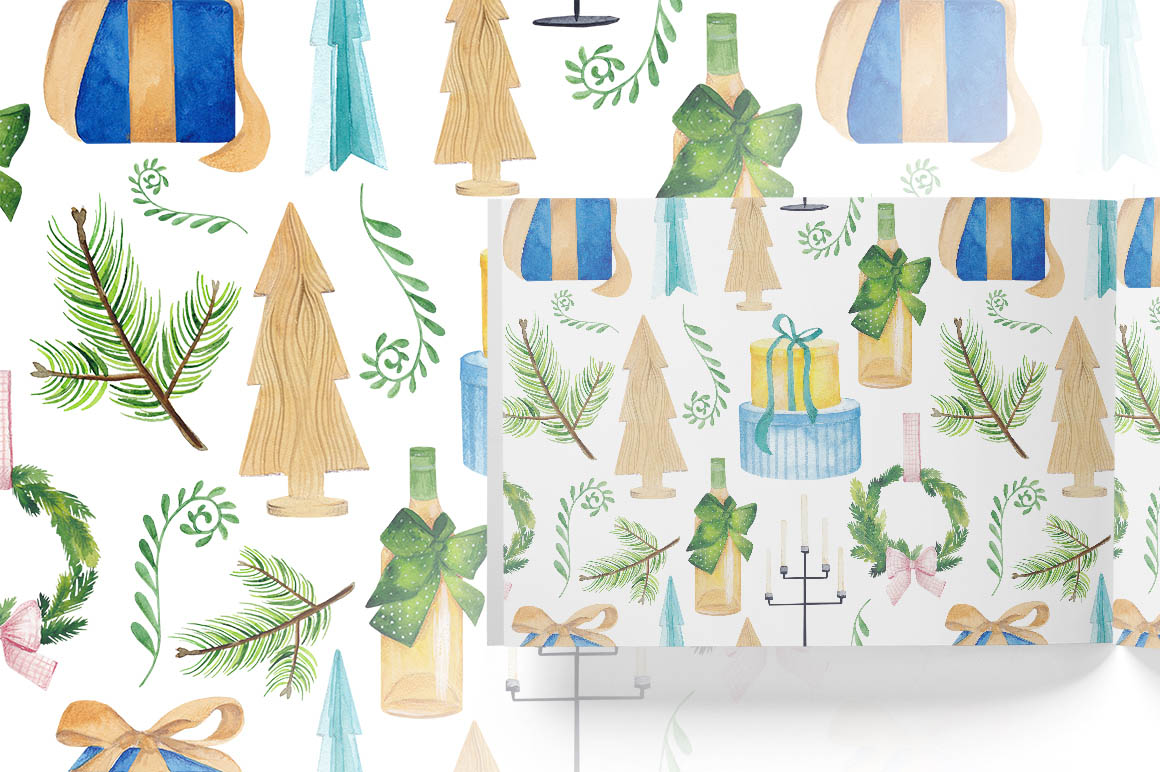 Patterns and elements, pre-made cards will help you to get into the spirit of northern Christmas. This set is wonderful for Christmas, New Year and even for Yule! There are 40 raster watercolor elements: deers, decorations, tree branches, paper tags, decorative elements, wreaths. You will also get 4 seamless patterns and 3 greeting cards. All elements have transparent background. Create your own Scandinavian Tale!