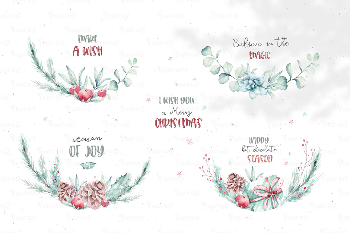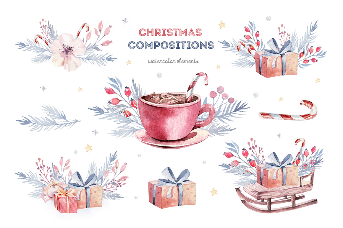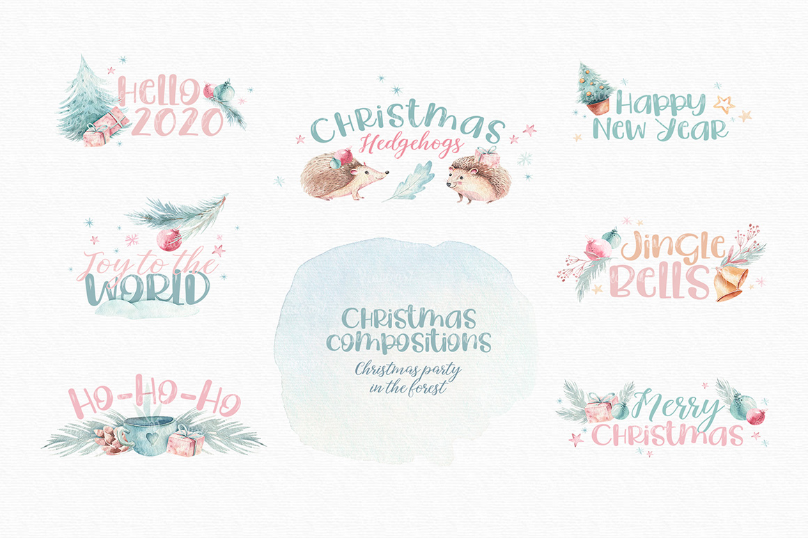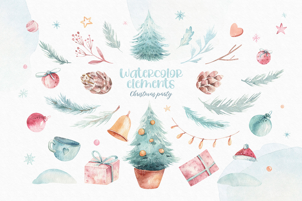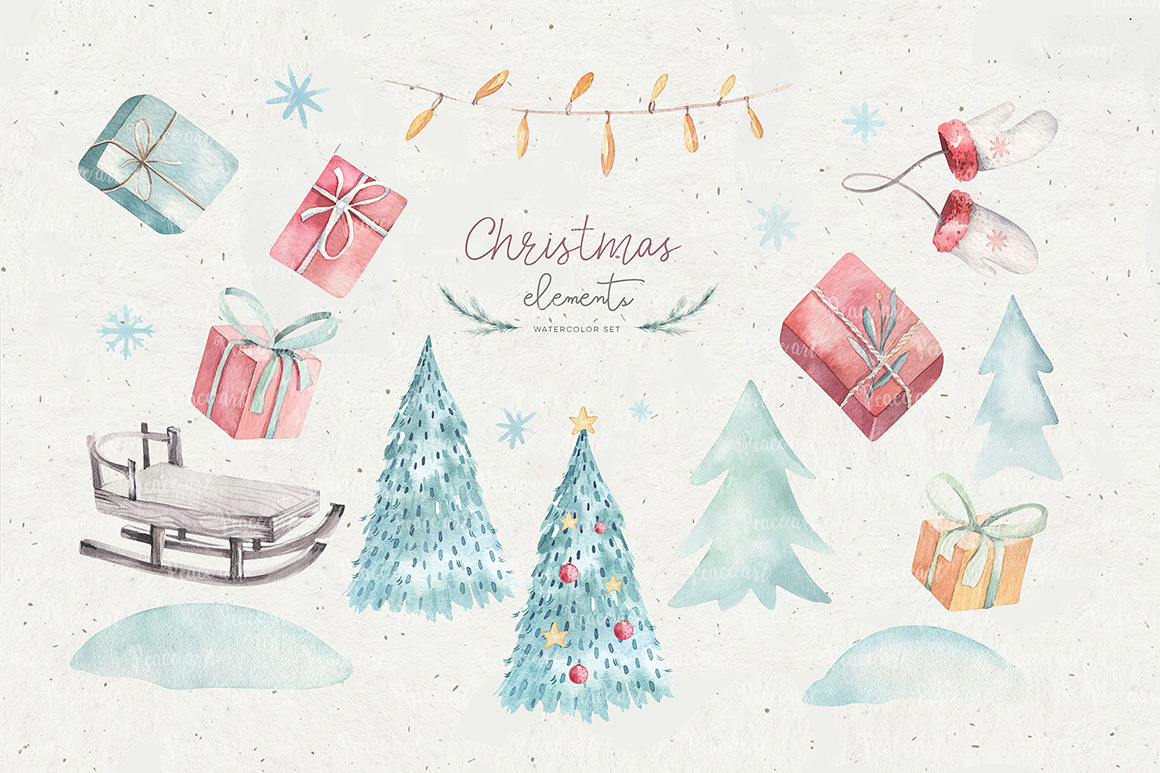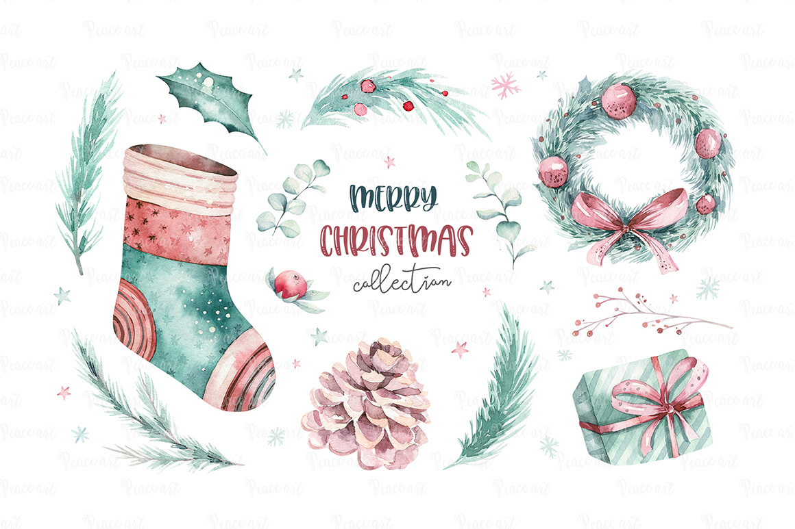 - Creative & decorative watercolor illustrations with Christmas & New Year theme – 4 great sets in 1 bundle!