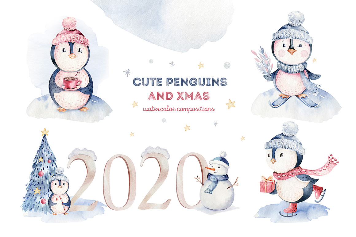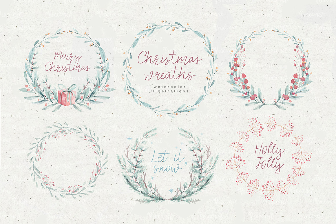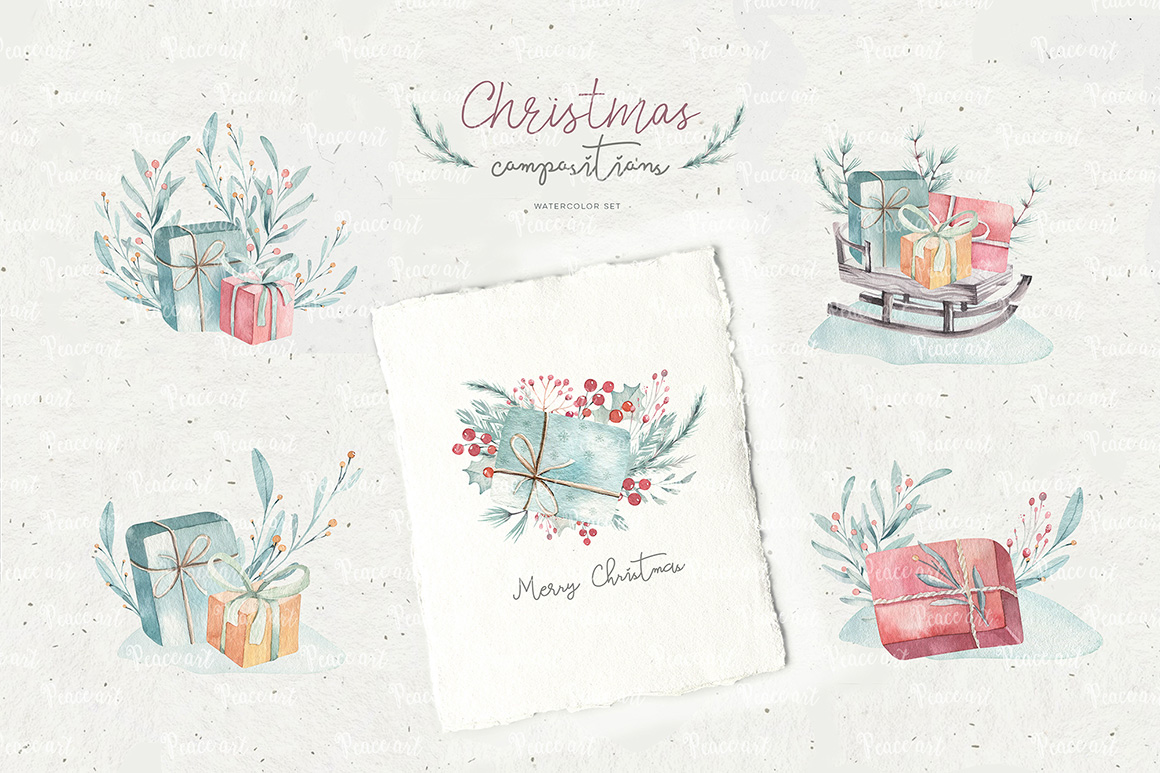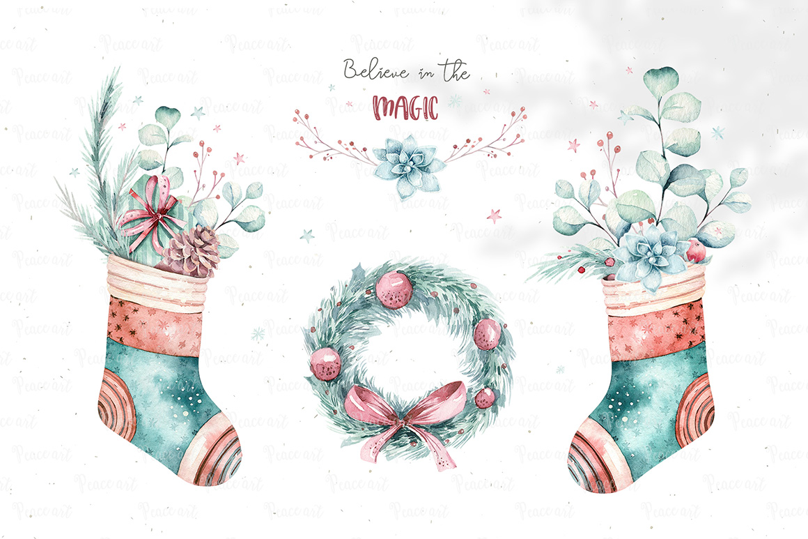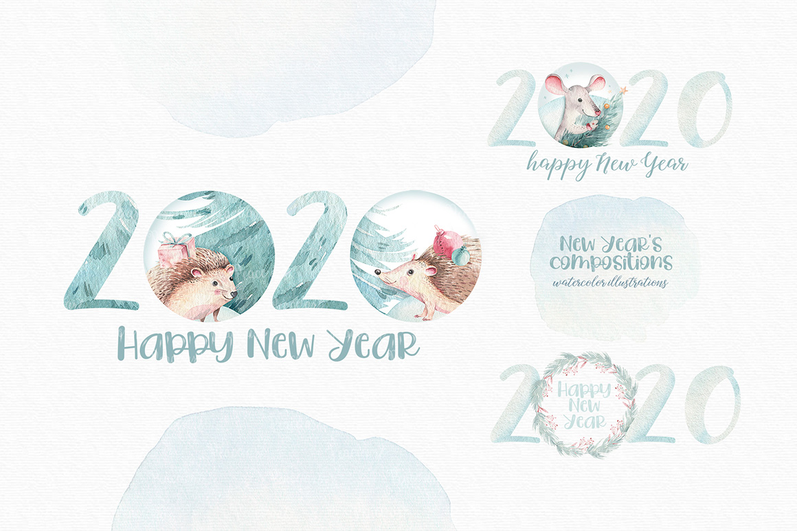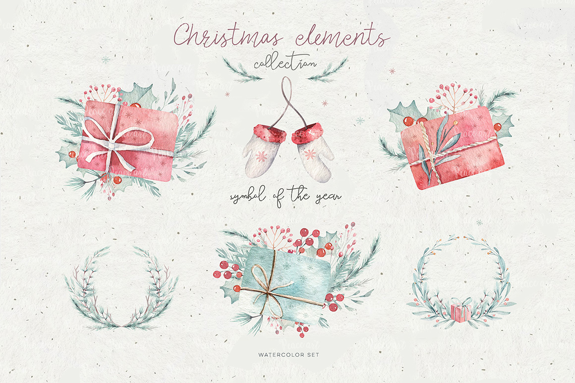 - Creative & decorative watercolor illustrations with Christmas & New Year theme – 4 great sets in 1 bundle!