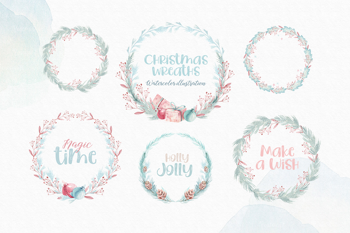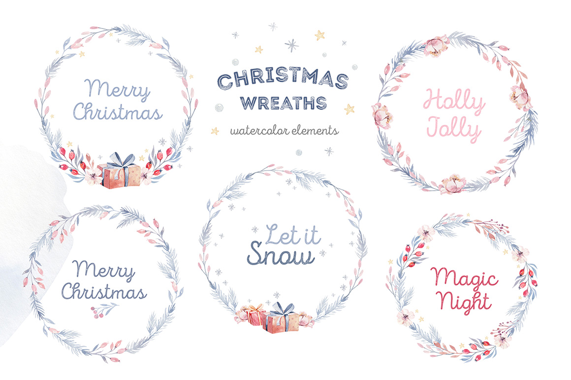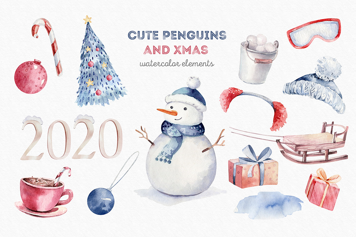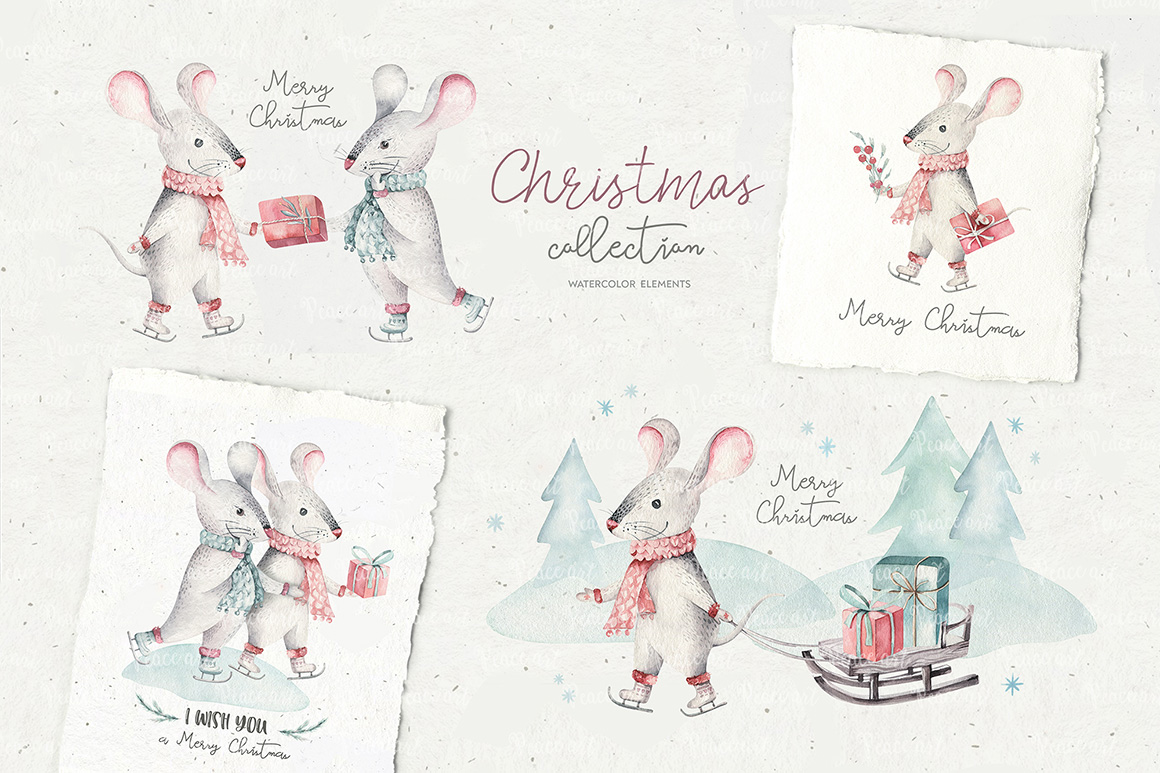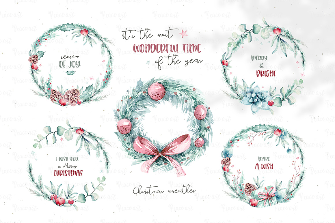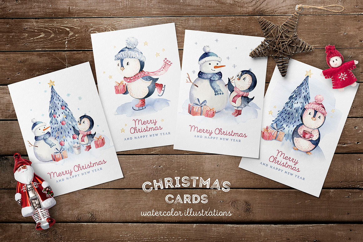 - Creative & decorative watercolor illustrations with Christmas & New Year theme – 4 great sets in 1 bundle!