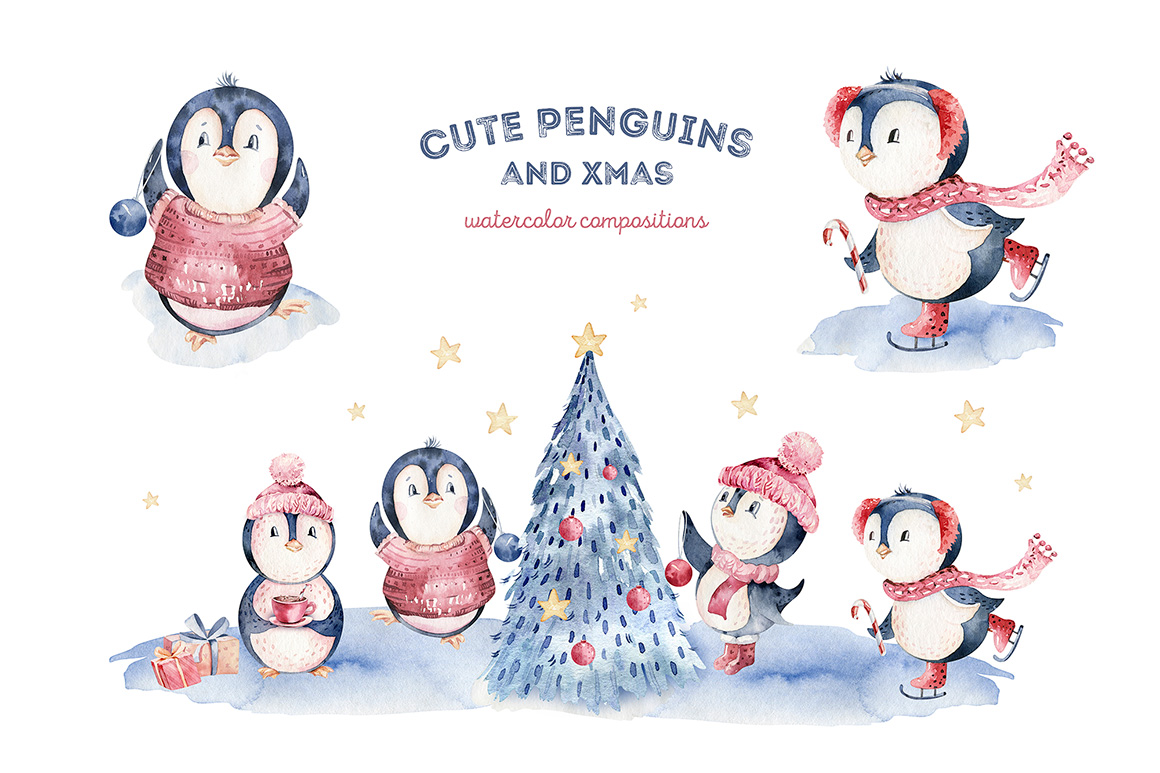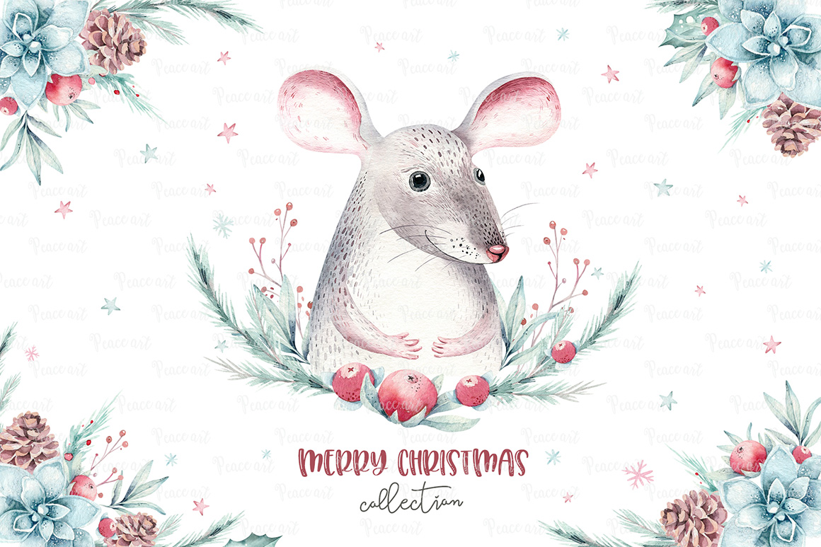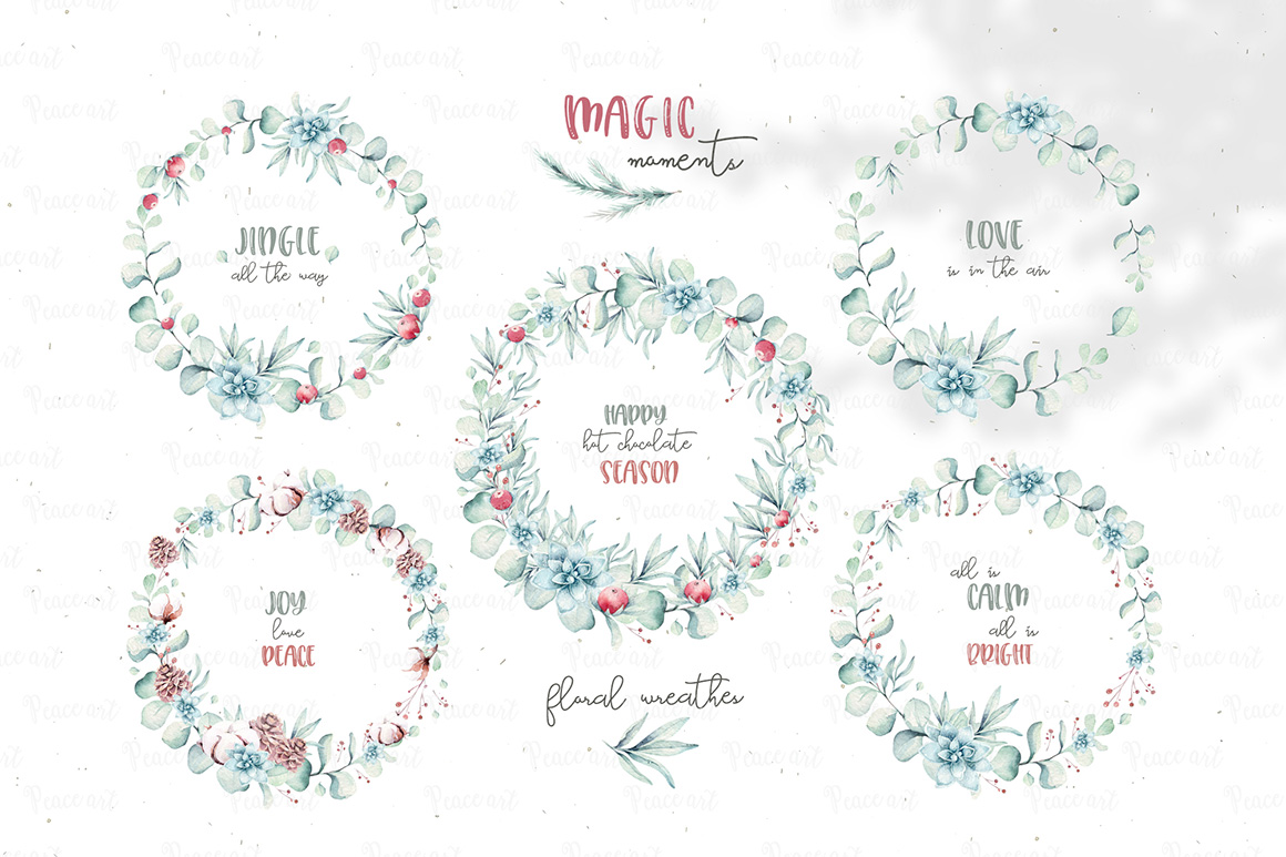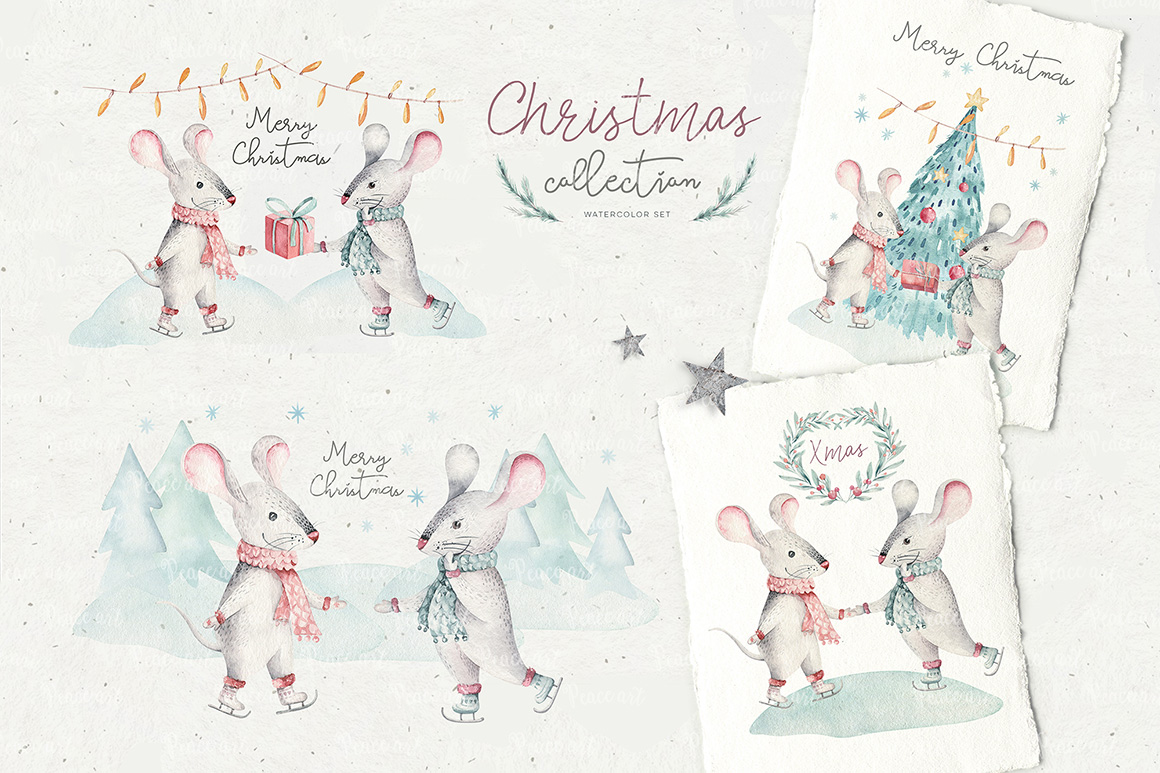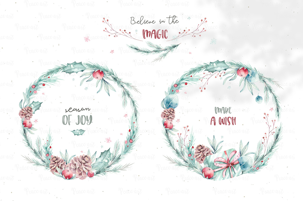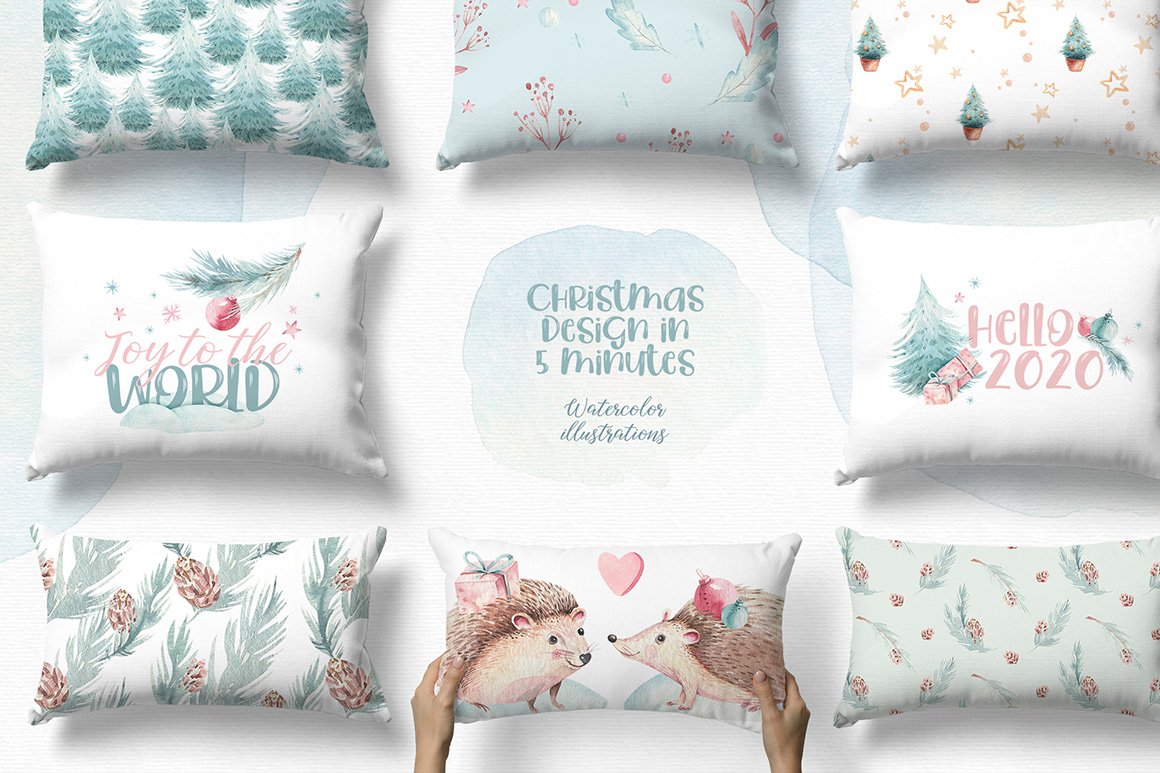- Creative & decorative watercolor illustrations with Christmas & New Year theme – 4 great sets in 1 bundle!